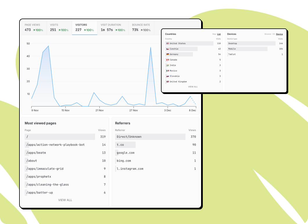 Page views, clicks, submissions, user paths. See what's happening the second you publish.