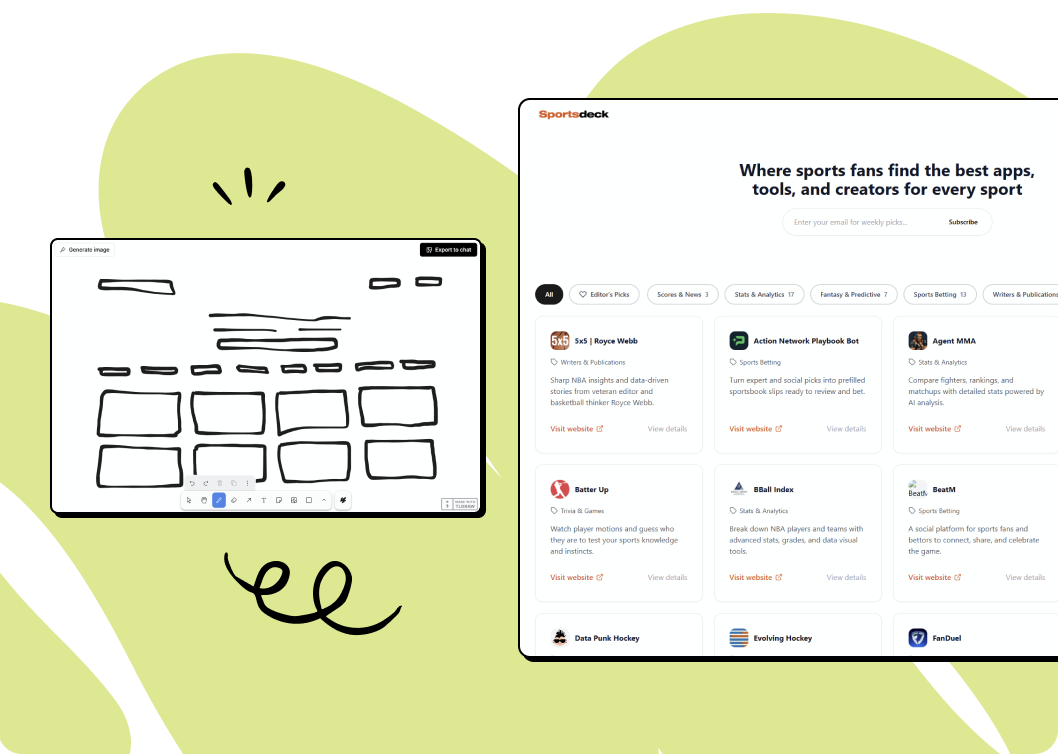 Wireframes, layouts, flows, entire screens. Draw whatever helps you think, then build it.