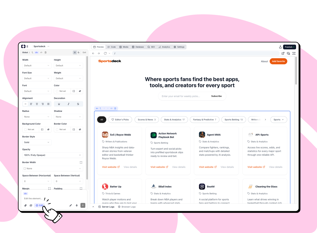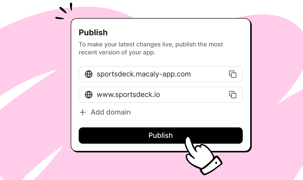 Buy a domain or bring your own. Click publish and you're live without DNS nightmares.