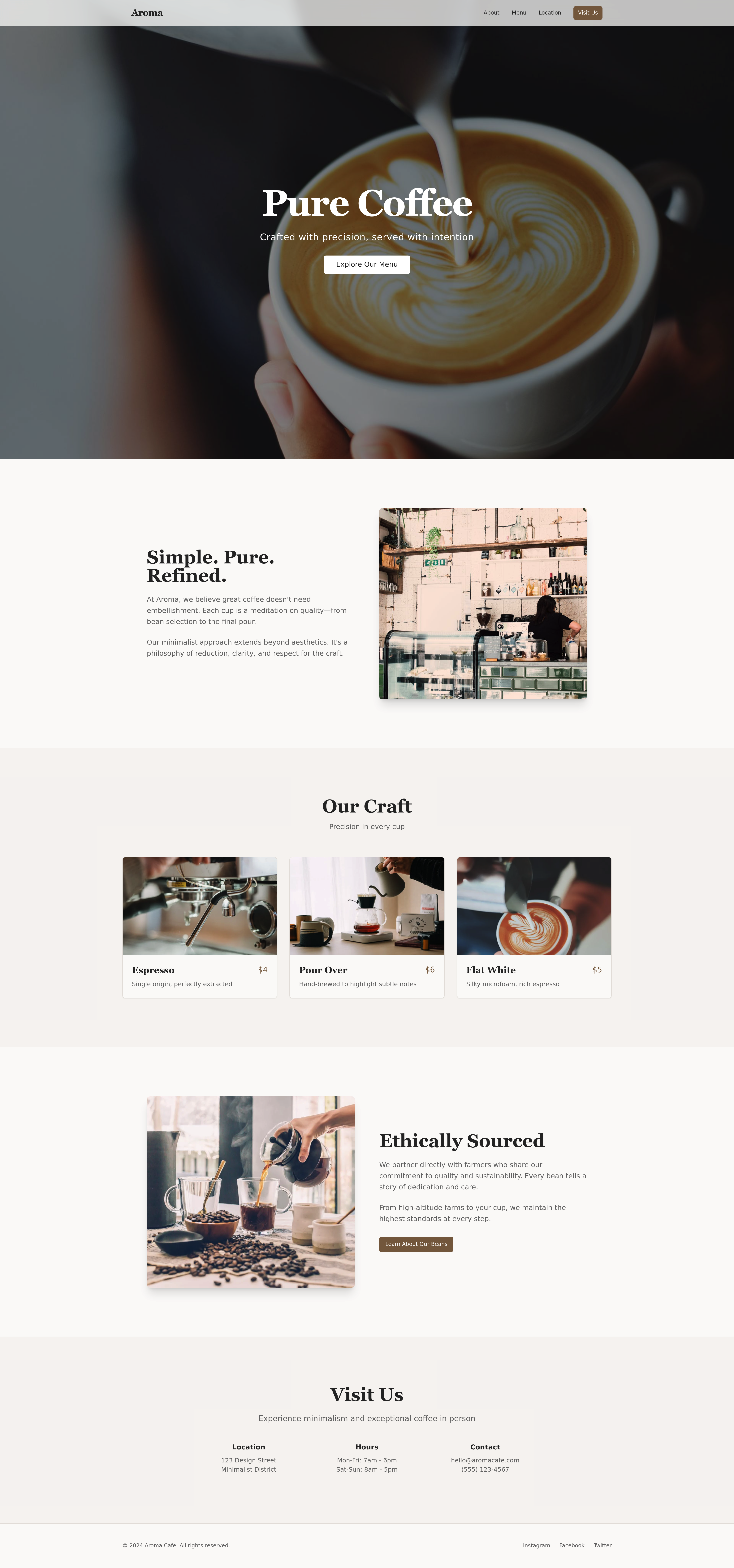 Discover a beautifully designed, minimalist cafe website template perfect for showcasing your coffee shop, bistro, or restaurant. This elegant web design emphasizes user experience with a clean layout, stunning visuals, and essential features for menus, locations, and online ordering. Attract more customers with a sophisticated online presence.