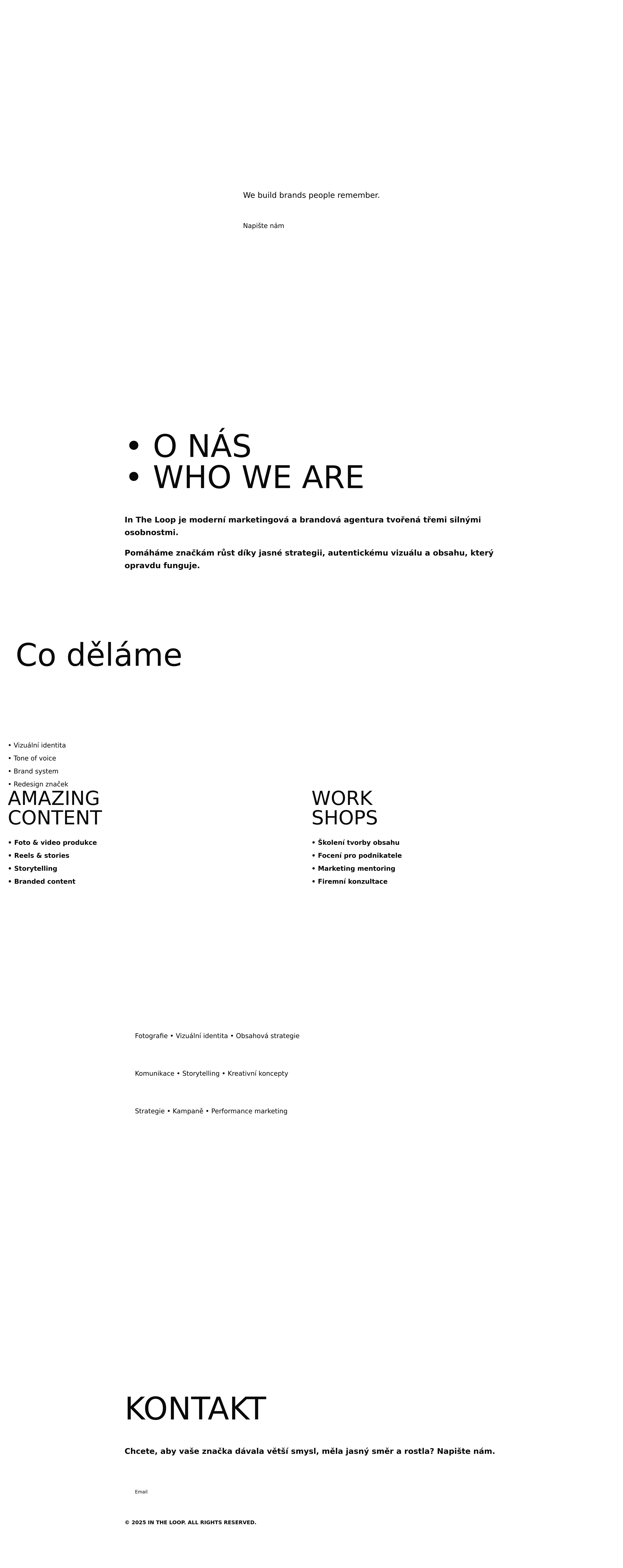 In The Loop is a modern marketing and branding agency specializing in visual identity, content strategy, and performance marketing. We help businesses grow with clear strategies, authentic visuals, and effective content. Our services include comprehensive branding, digital marketing campaigns (Meta Ads, Google Ads), content creation (photo & video production, storytelling), and expert workshops. We build brands people remember.