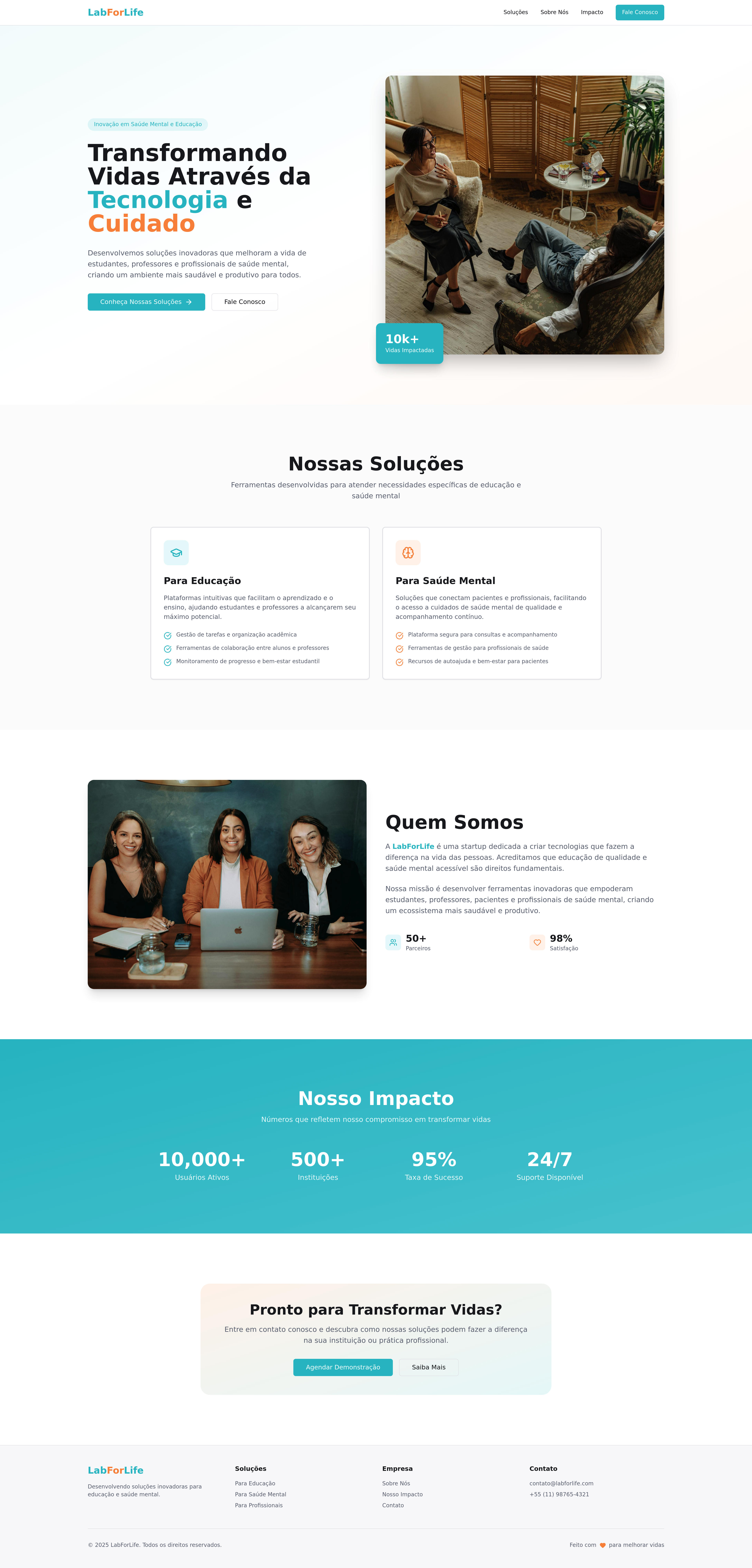 LabForLife: Empowering students, educators, and mental health professionals with innovative web solutions. This business website showcases digital tools designed to enhance well-being, support learning, and provide resources for psychological health. Discover solutions for academic success and mental wellness.