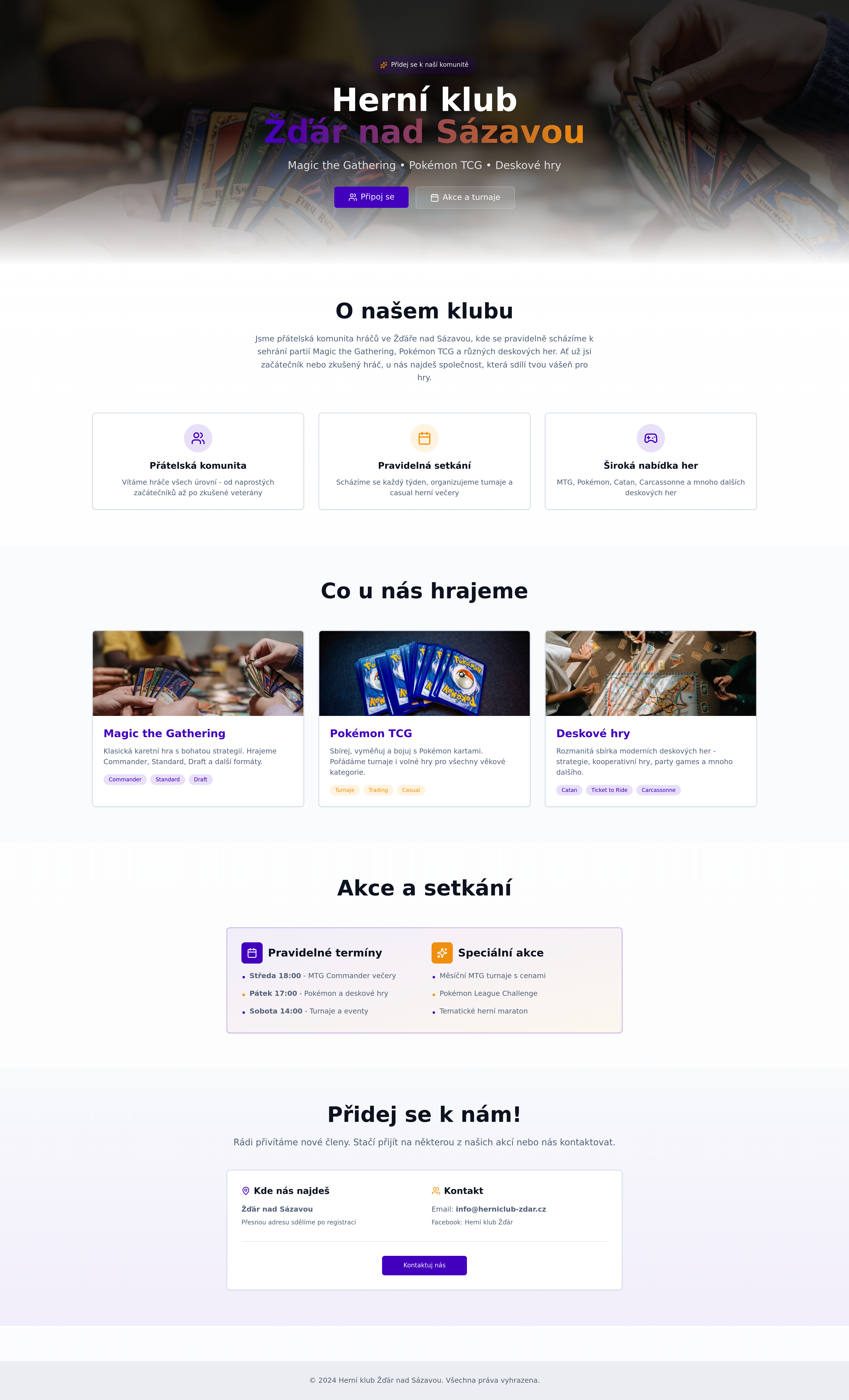 Discover the ultimate hub for Magic: The Gathering, Pokémon, and board game enthusiasts in Žďár nad Sázavou. This community website connects players, organizes local events, and provides resources for all your favorite tabletop games. Join our vibrant community and explore upcoming tournaments, trading opportunities, and social gatherings for card and board game lovers.