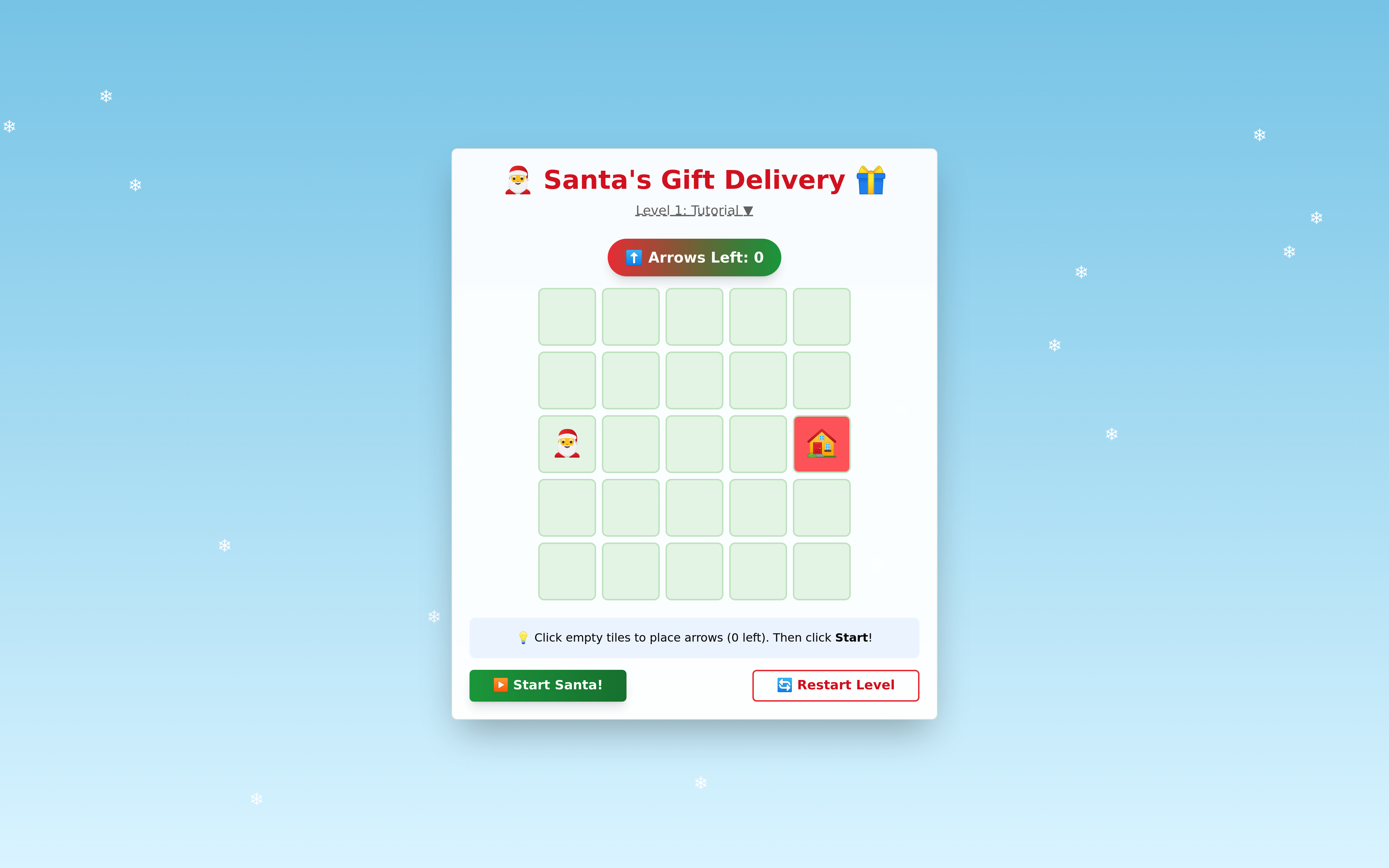 Help Santa deliver gifts in this festive, grid-based puzzle game for kids! Rotate turn tiles to guide Santa around obstacles and reach his destination. Featuring charming Christmas-themed visuals, multiple levels of increasing difficulty, and engaging gameplay, this web-based game offers a fun and educational experience for children aged 7-10. Perfect for holiday entertainment and developing problem-solving skills.