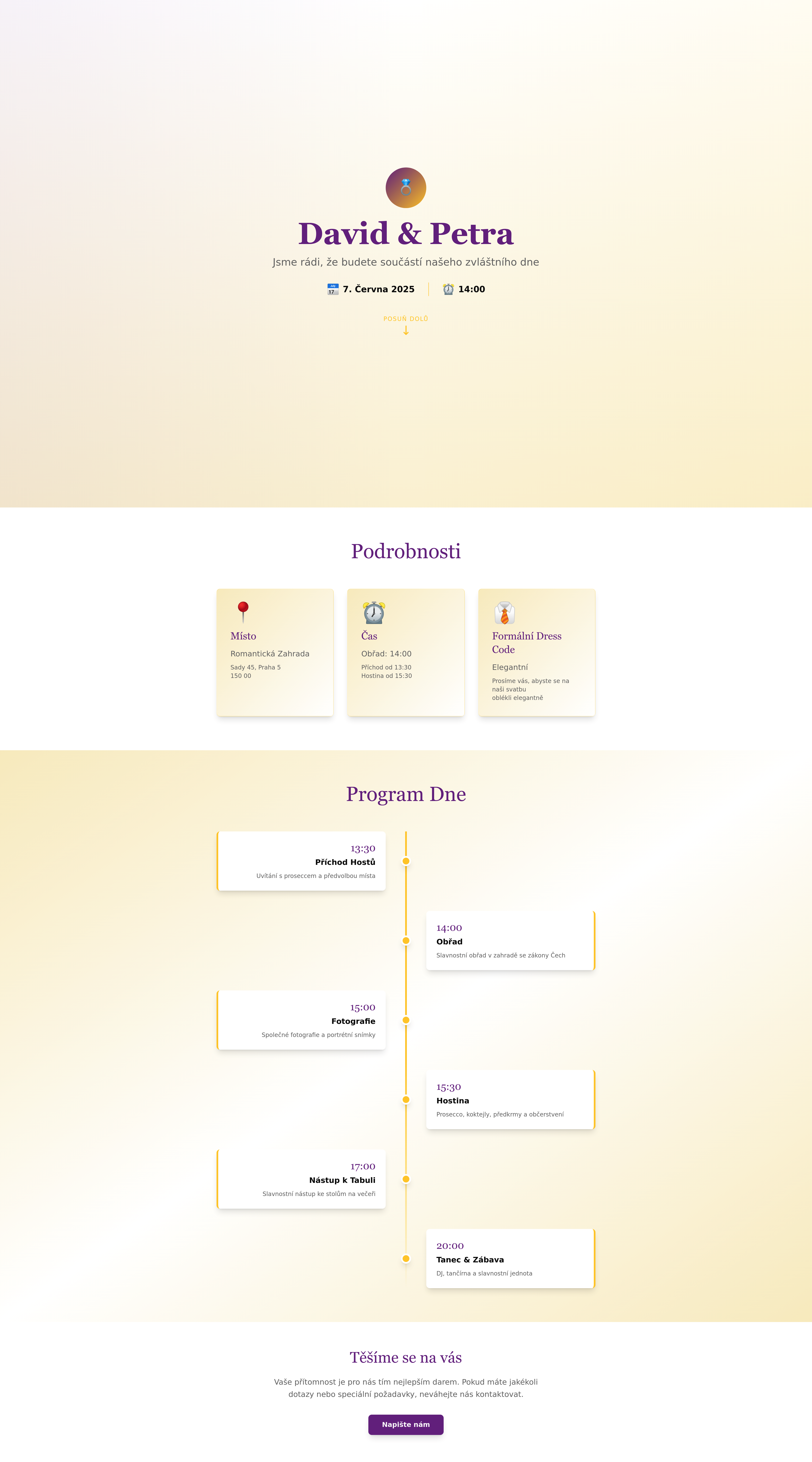 Create a beautiful and simple wedding website to share essential event details with your guests. This elegant site will feature information about the ceremony and reception venues, dates, times, and a detailed schedule of the wedding day. Perfect for couples looking for an easy way to communicate all necessary wedding information.