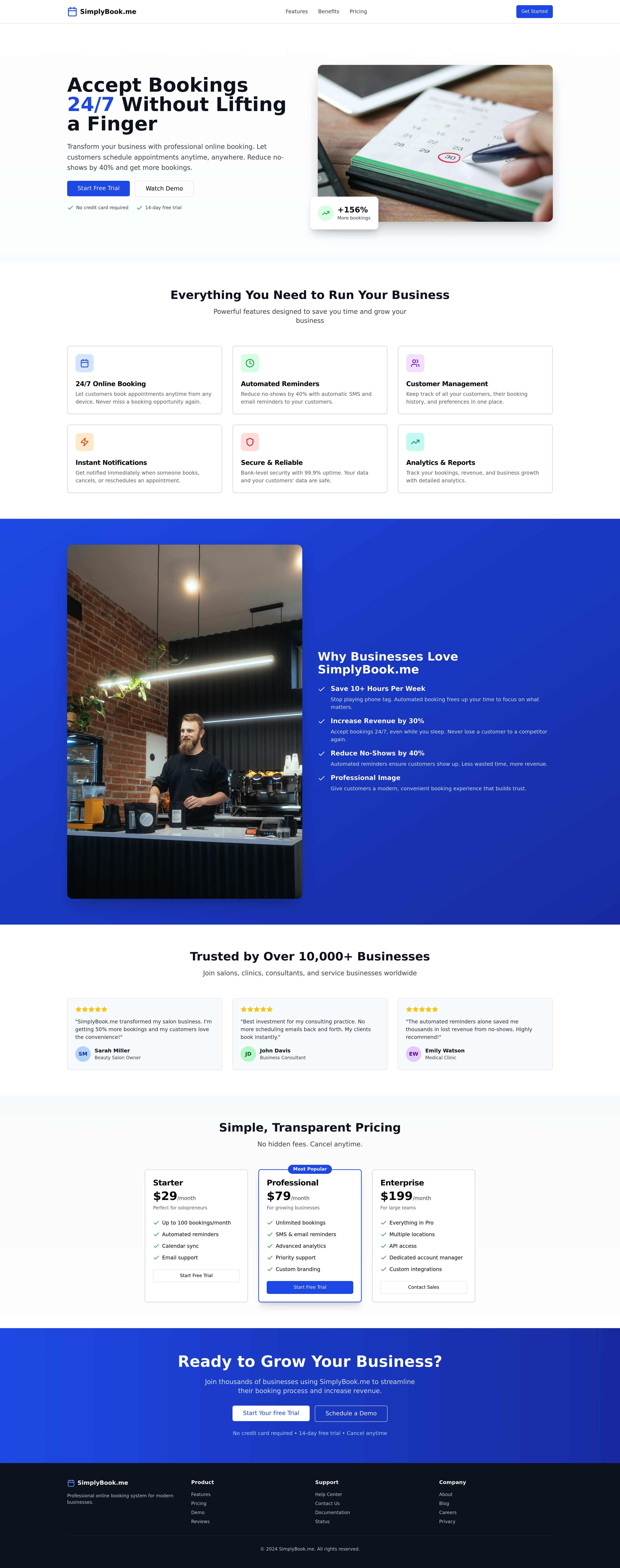 Create a professional e-commerce website to sell SimplyBook.me as an add-on service. This platform allows users to seamlessly integrate and offer online booking solutions, perfect for service-based businesses, consultants, and educators looking to enhance their offerings with a robust scheduling system.