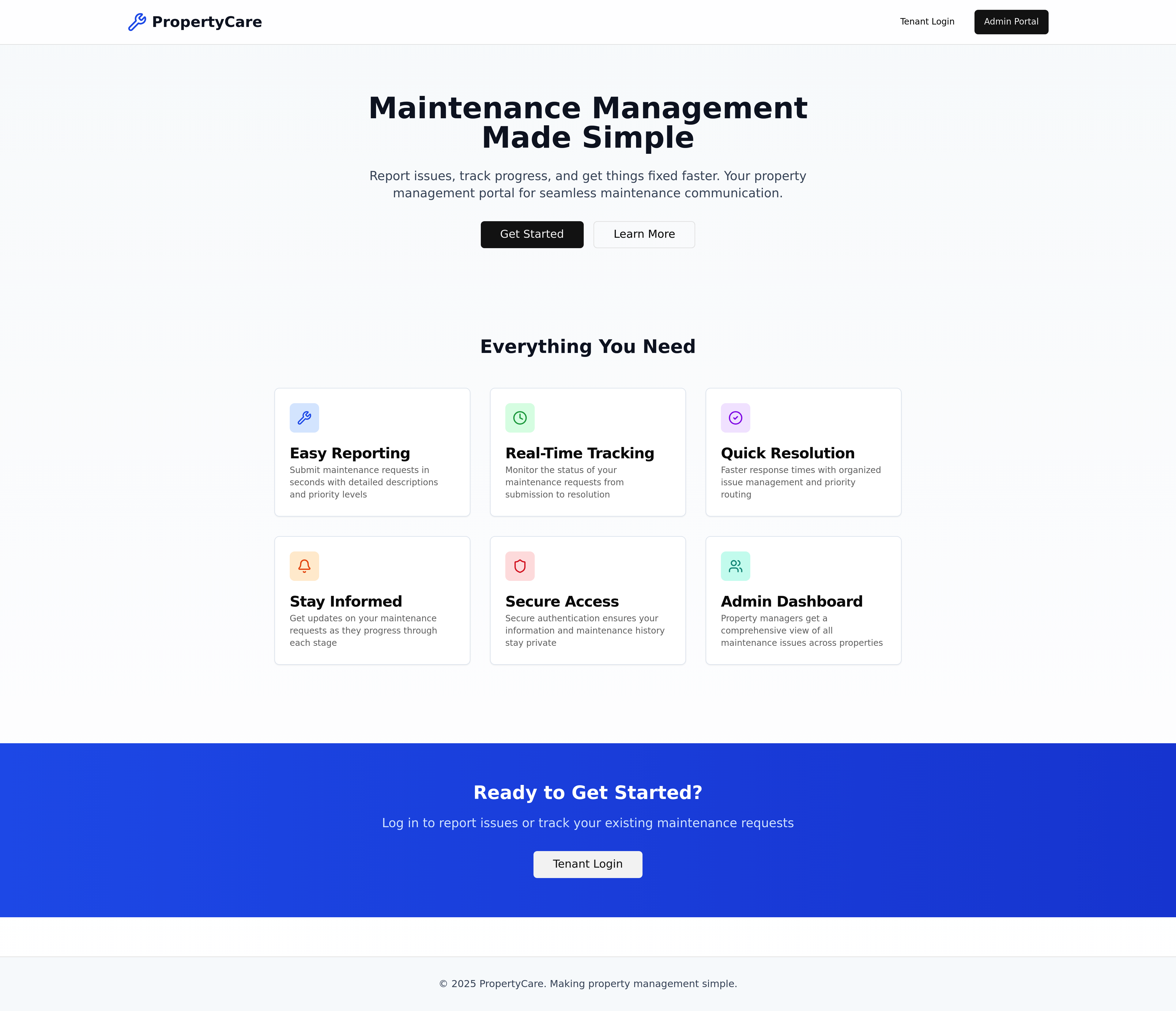 A comprehensive property management website designed for landlords and tenants. This platform allows tenants to easily log in, submit, and track maintenance requests, streamlining communication and ensuring timely resolution of property issues. Ideal for efficient residential or commercial property oversight.