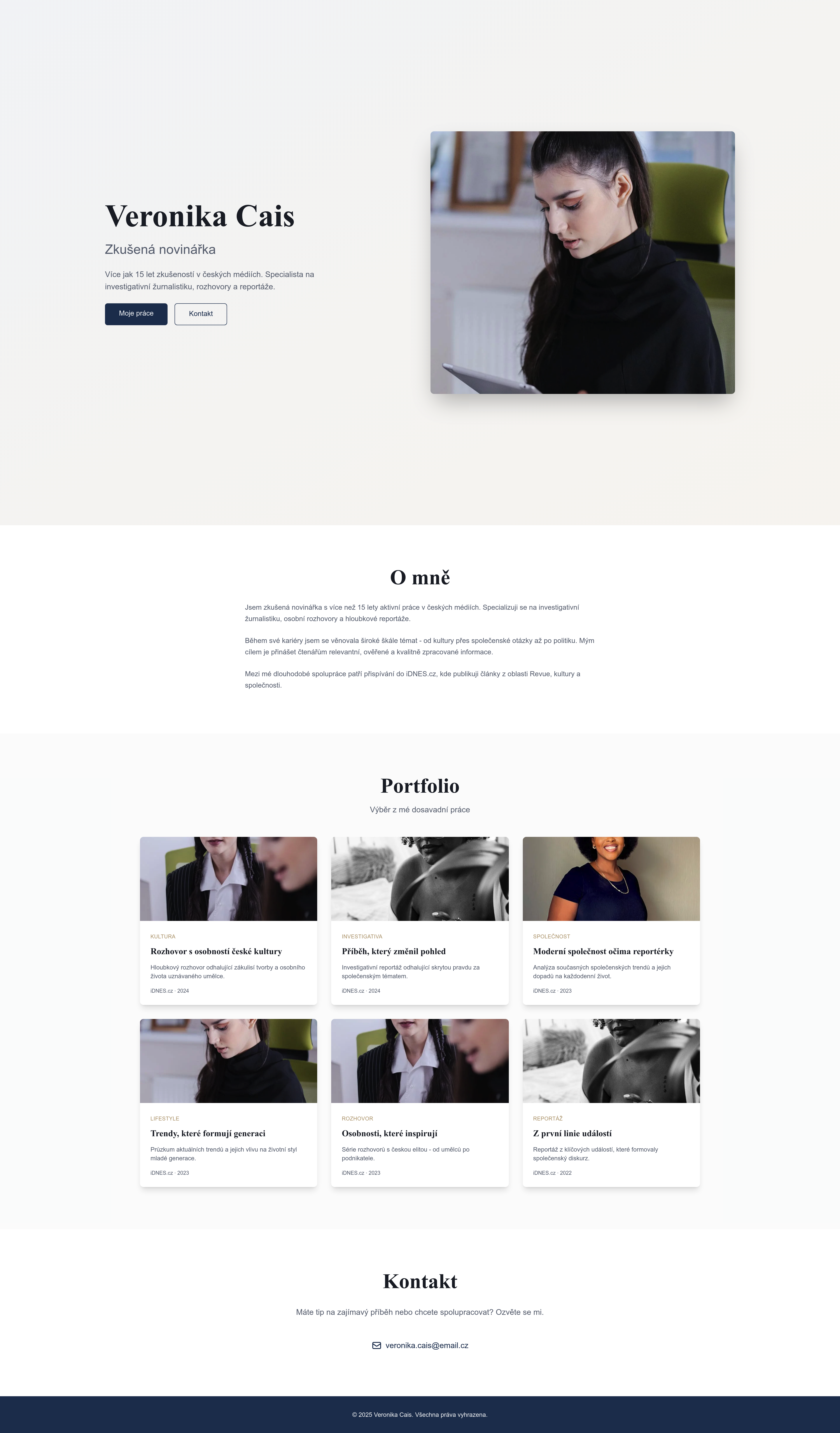 Explore the professional portfolio of Veronika Cais, an experienced journalist with over 15 years in media. This personal website showcases her extensive work, featuring scrollable articles and insights into her career. Ideal for potential employers, collaborators, and readers interested in quality journalism.