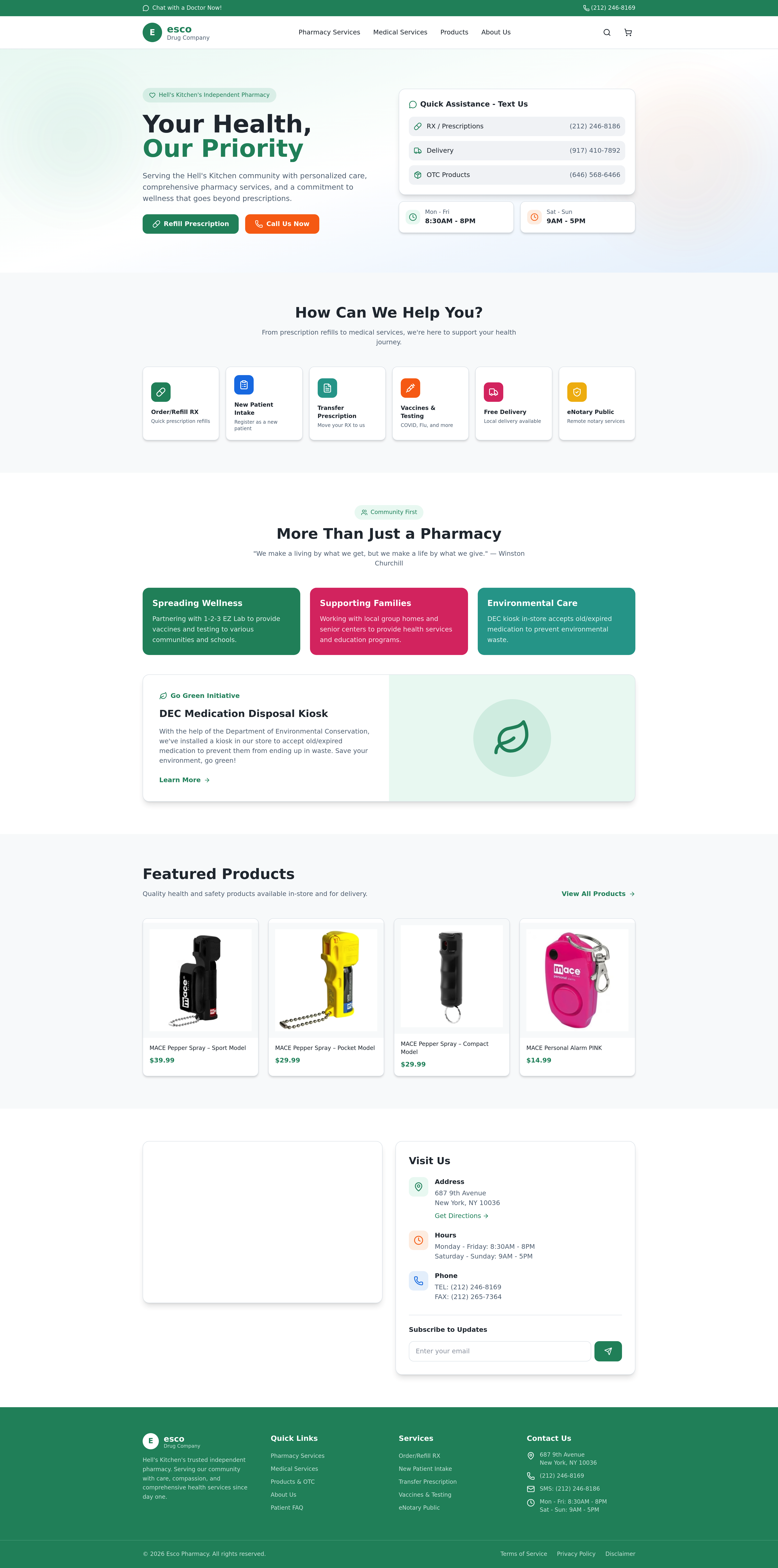 Explore a modern, professional redesign for Esco Pharmacy, a New York City-based pharmacy. This project focuses on enhancing user experience with a contemporary layout, improved navigation, and authentic branding, ensuring all links are functional and providing clear feedback for un-implemented sections. Ideal for local businesses seeking a digital refresh.