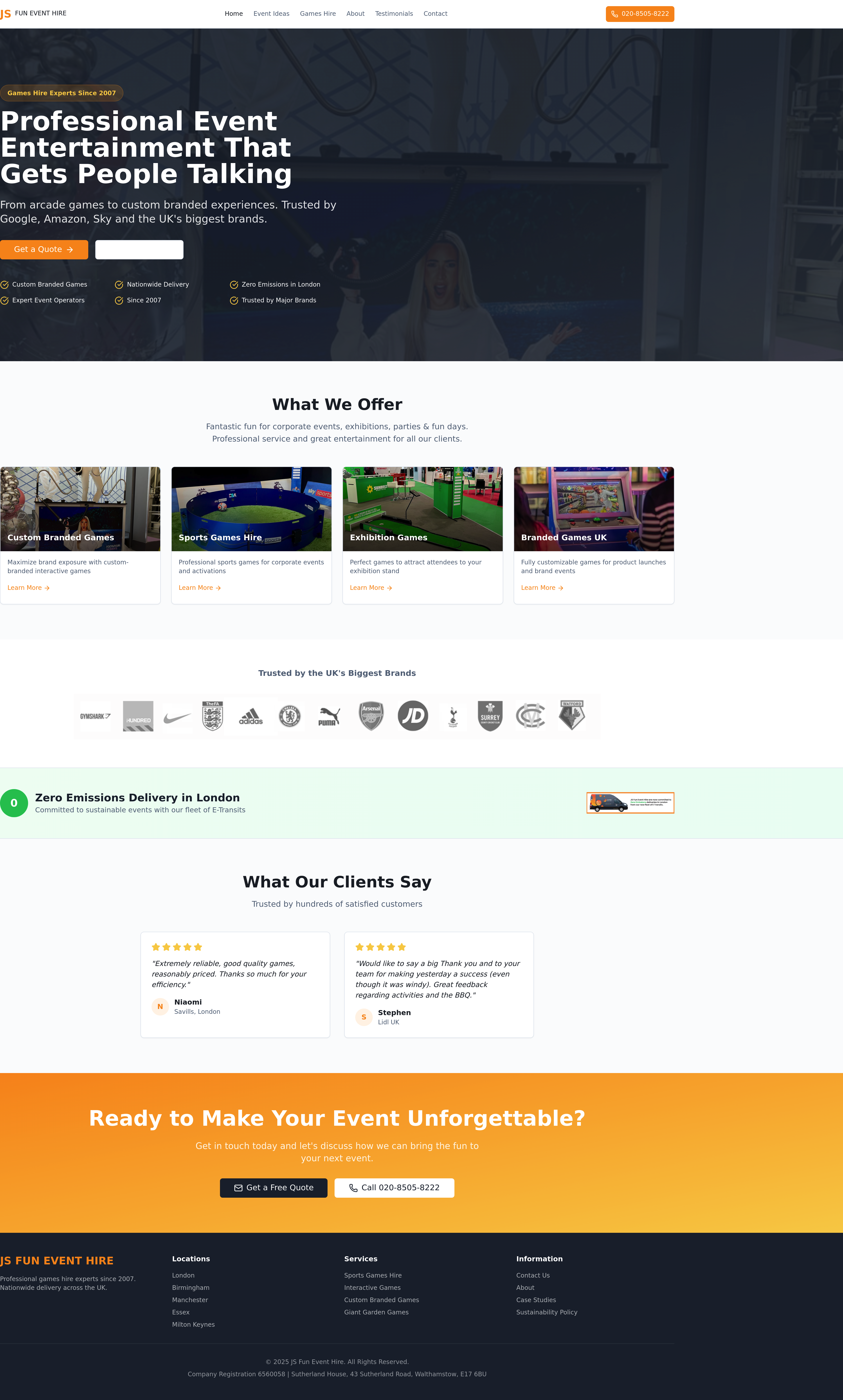 Explore JS Fun Event Hire, a modern and professional website redesign for an event hire company. Discover a wide range of fun event equipment, from bouncy castles to soft play, perfect for parties, corporate events, and special occasions. This redesign focuses on an improved user experience, contemporary design, and easy navigation to help you plan your next unforgettable event.