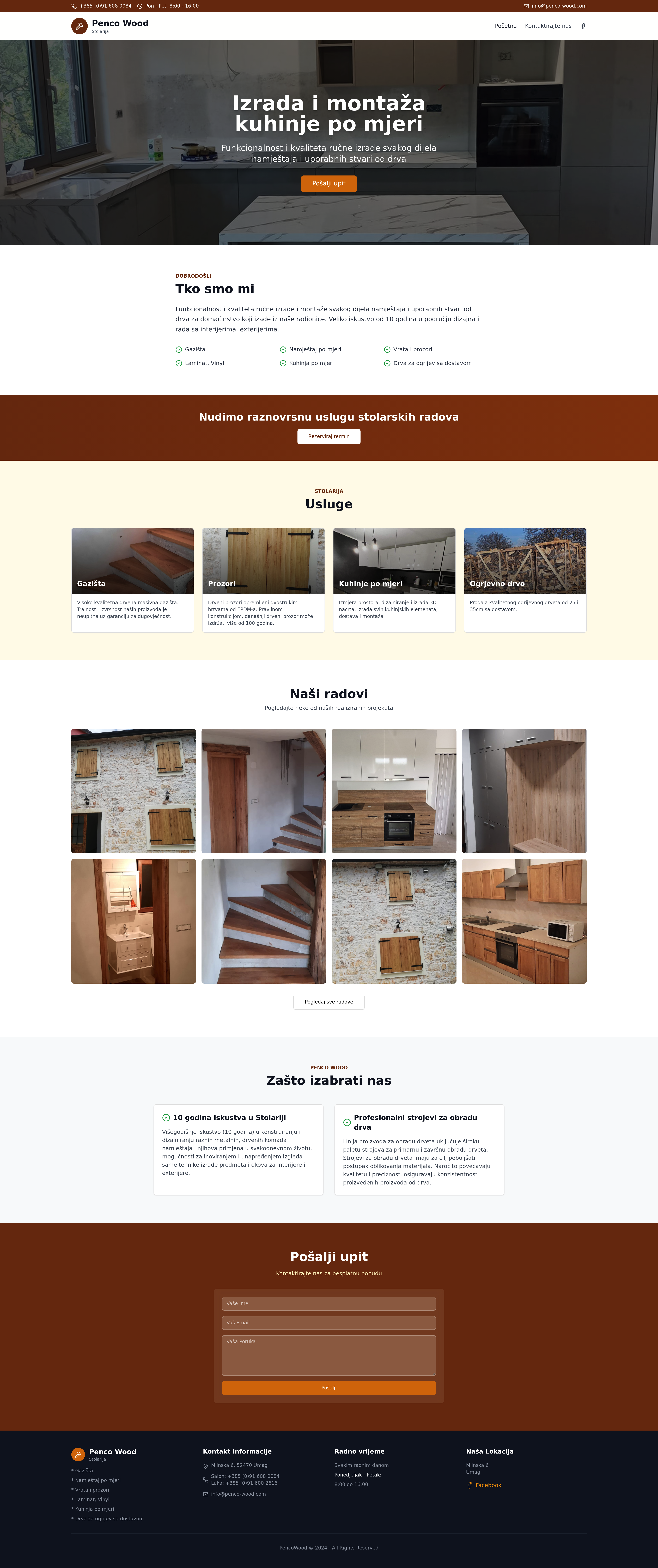 A modern, professional redesign of a woodworking business website, Penco-Wood.com, focusing on contemporary design principles, improved layout, and enhanced user experience. This project will showcase custom woodworking, furniture, and cabinetry with an authentic brand identity, utilizing existing content and AI-generated imagery for a visually appealing and functional online presence.