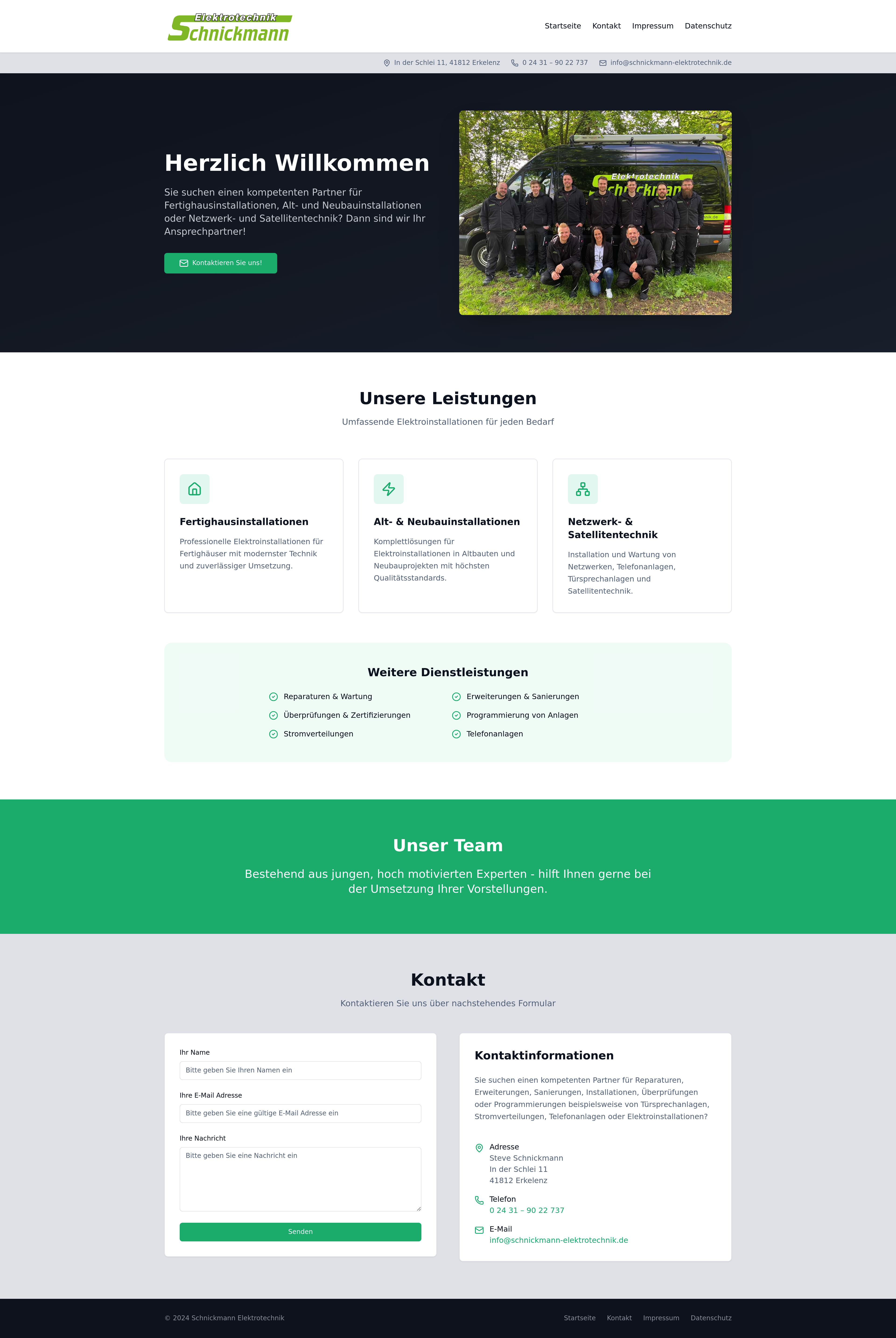 Modern redesign for Schnickmann Elektrotechnik, an electrical engineering business. This professional business website features an improved layout, enhanced user experience, and a contemporary design, showcasing their services and expertise in electrical solutions. Ideal for businesses seeking a refreshed online presence.