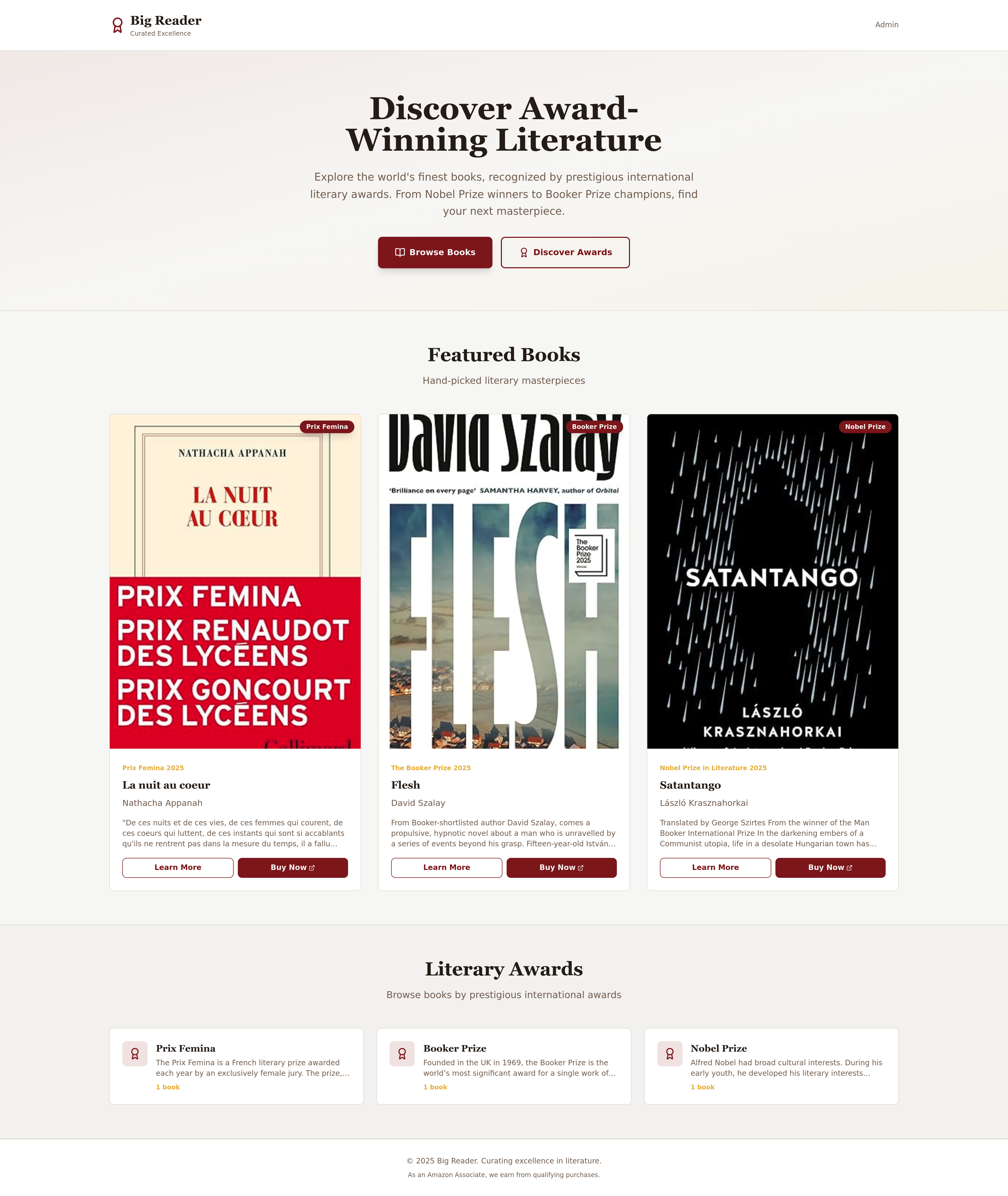 Discover your next great read with this book recommendation website, designed for affiliate marketing success. Featuring an expertly curated selection of books based on prestigious international book prizes and literary awards, this platform helps users find award-winning titles while generating affiliate income. Explore top-tier literature and build a profitable online presence.