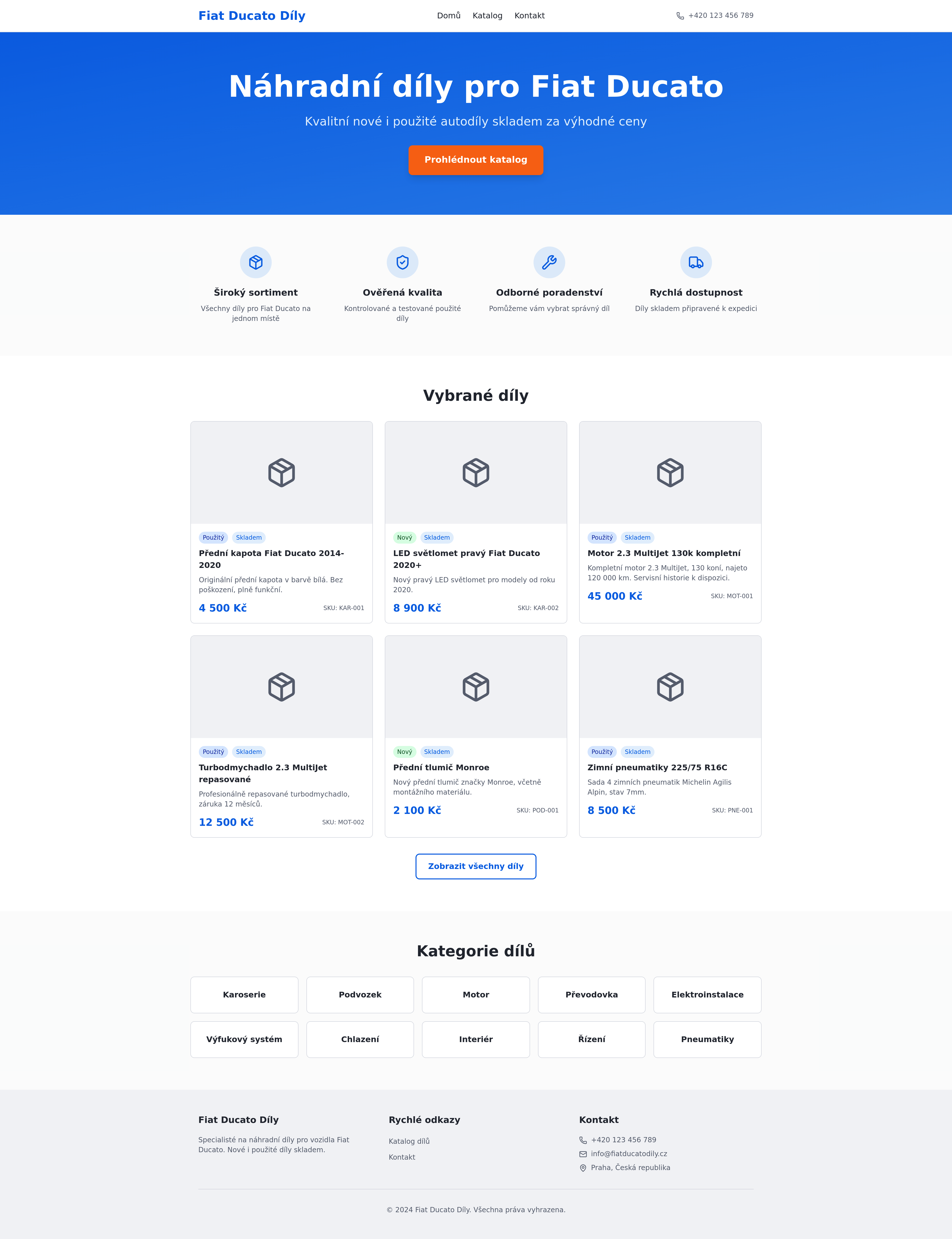 Explore a comprehensive e-commerce platform for Fiat Ducato spare parts, offering both new and used components. Find everything from body and chassis parts to engine, transmission, and electrical systems. Also features a wide selection of tires. Perfect for Fiat Ducato owners and repair shops seeking reliable parts online.