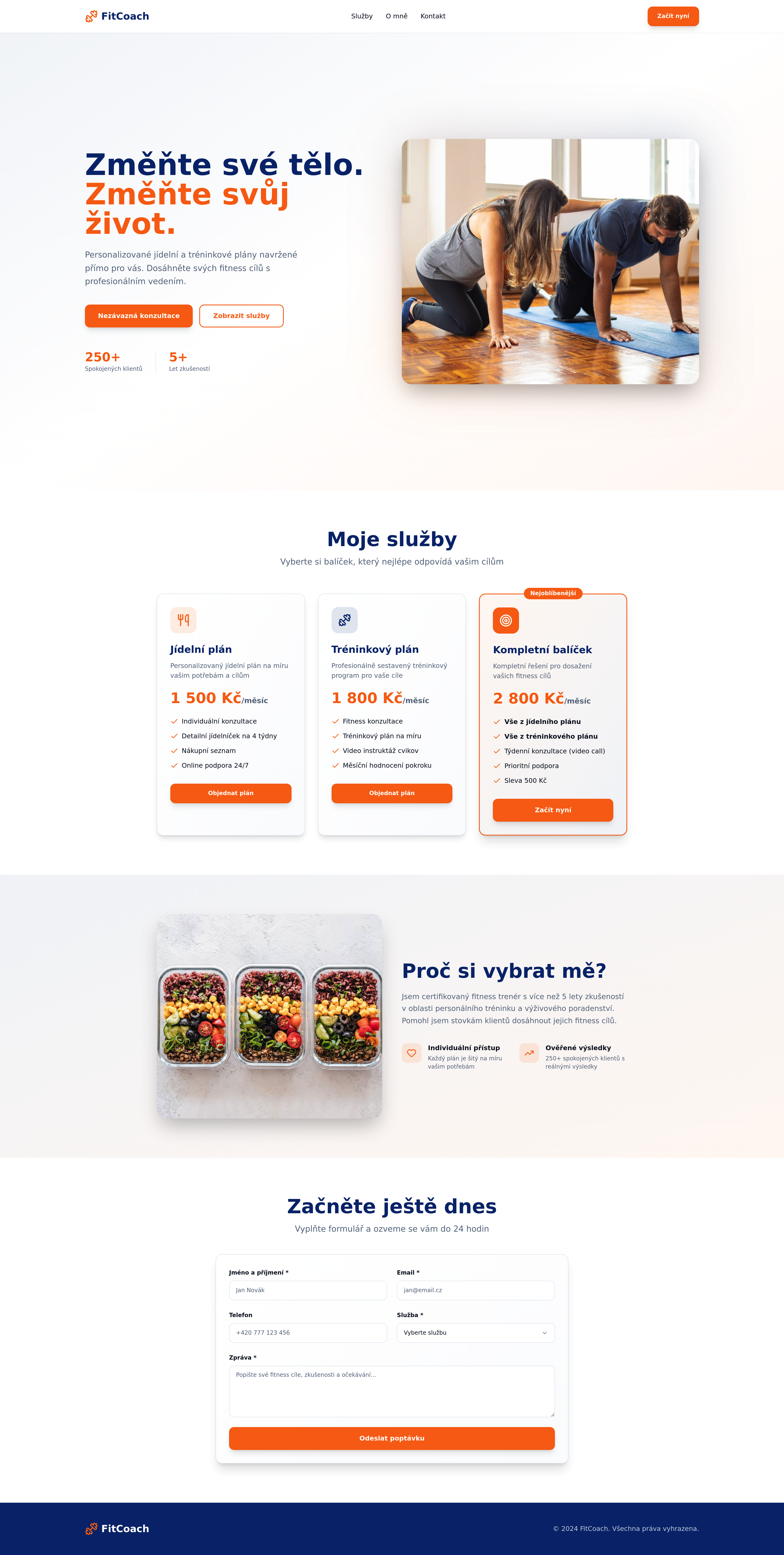 Create a professional website for a fitness trainer offering personalized meal plans and workout routines. This platform helps fitness professionals showcase their services, attract new clients, and manage client programs efficiently. Features include client management, custom plan generation, and progress tracking.