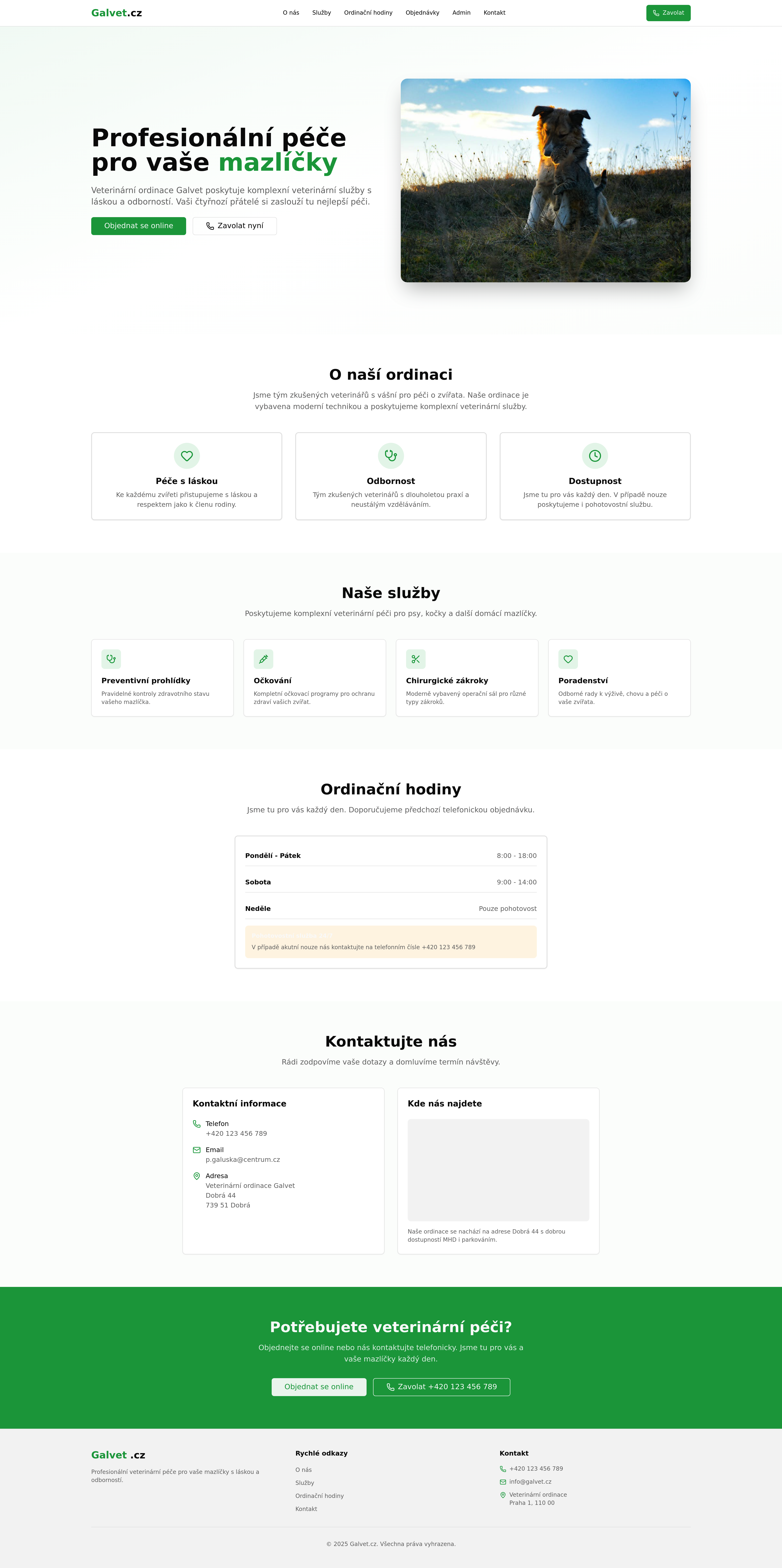 Galvet.cz is a professional veterinary clinic website for Dr. Galvet, offering comprehensive animal care services. This business website features appointment booking, service listings, and contact information, designed to connect pet owners with expert veterinary care.