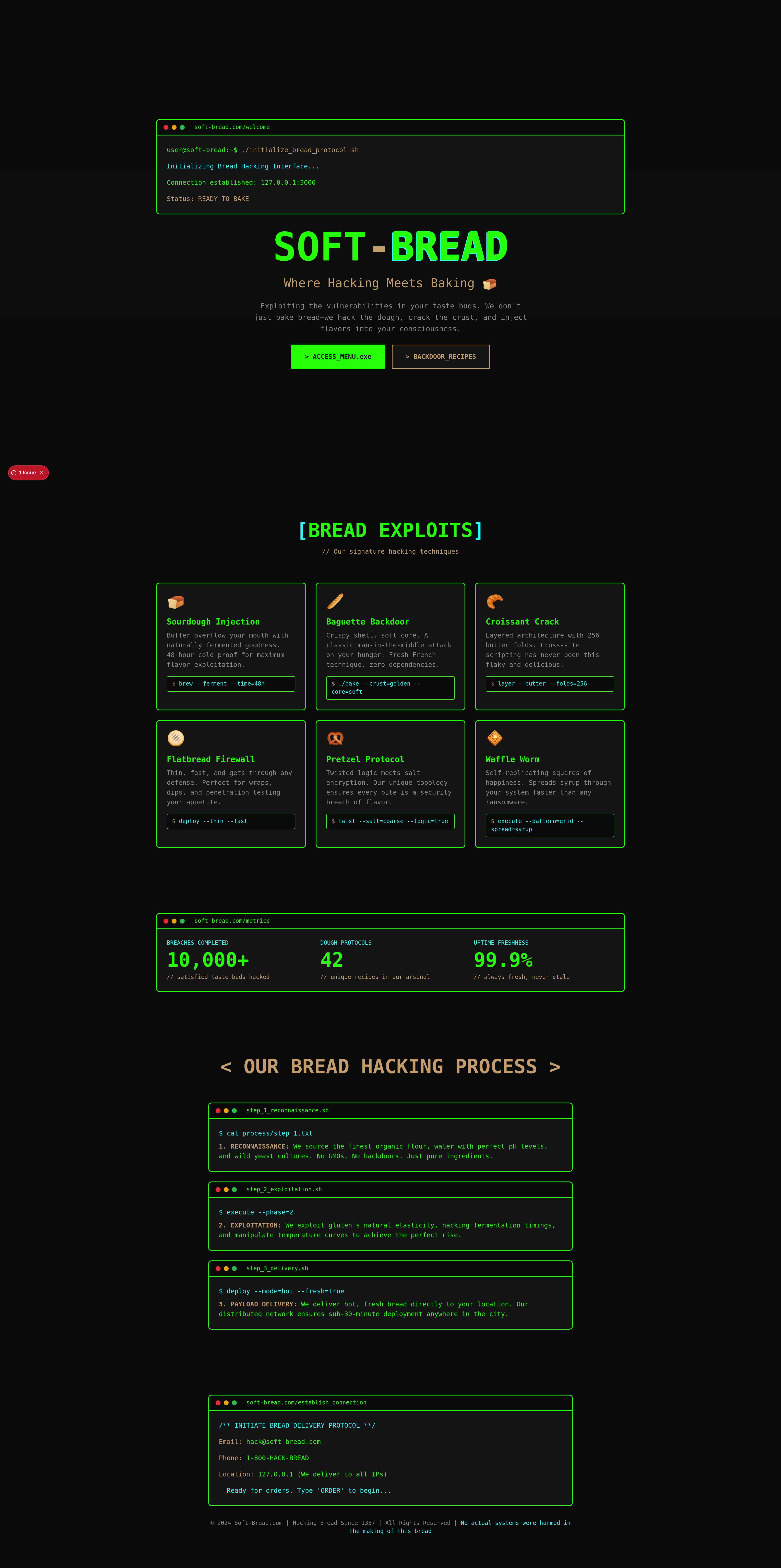Explore Soft-Bread.com, a unique website blending the art of bread making with the intriguing world of ethical hacking. Discover recipes, baking tips, and cybersecurity insights presented in a fun, engaging, and secure HTML template. Perfect for bakers and tech enthusiasts alike!