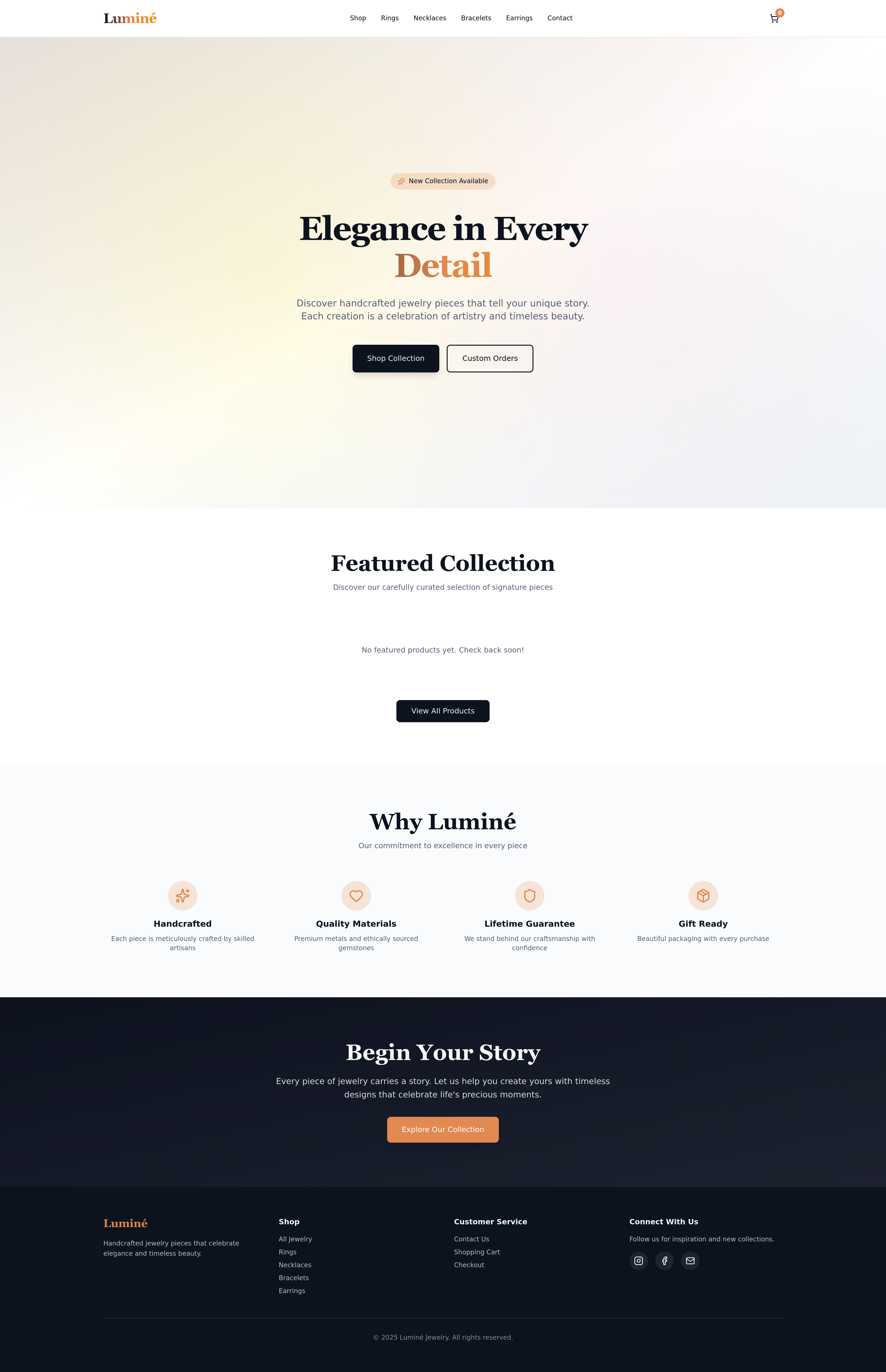 Discover exquisite handcrafted jewelry at our online store. This e-commerce website showcases a stunning collection of unique jewelry products, offering a seamless shopping experience for customers looking for quality and elegance. Explore our latest designs and find the perfect piece to complement your style.
