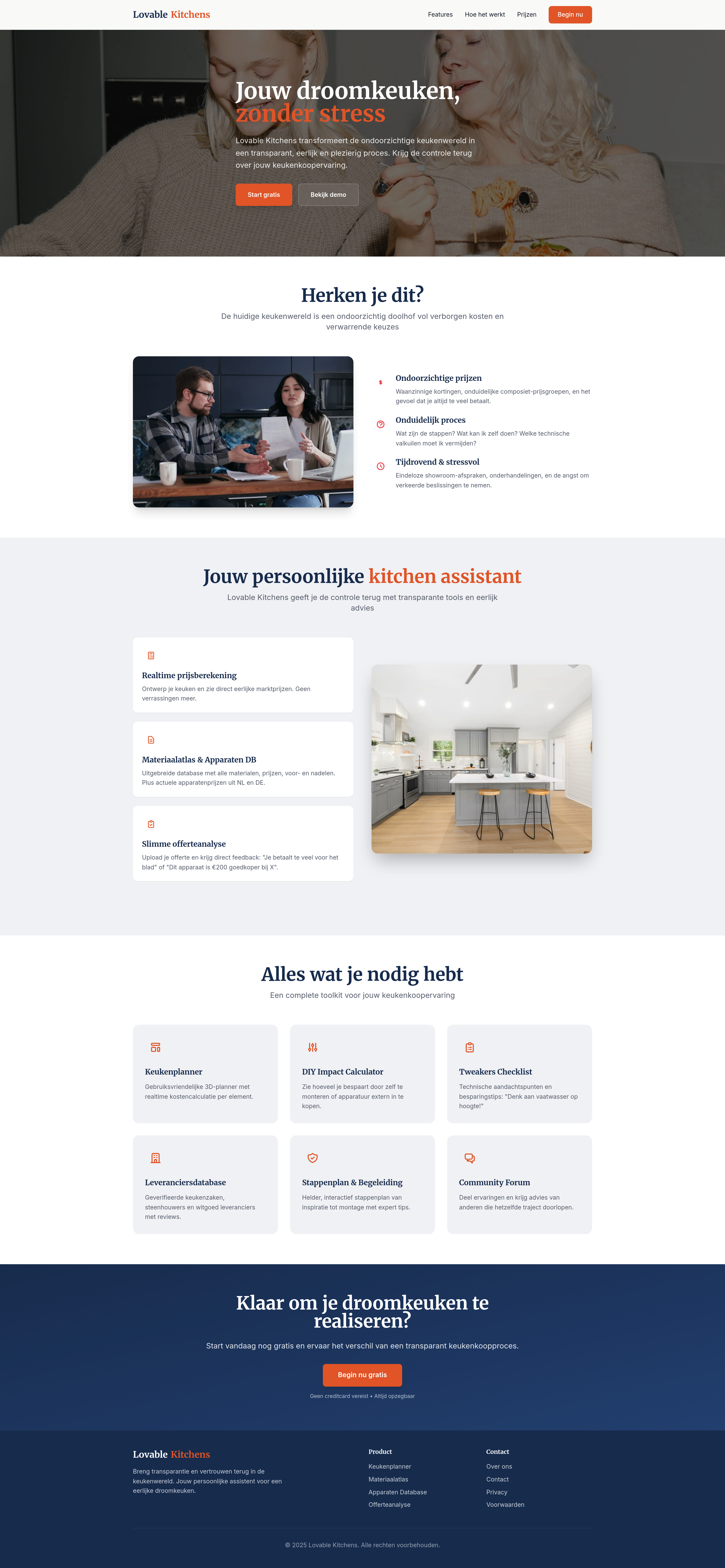 Lovable Kitchens is an innovative web platform designed to demystify the kitchen buying process. It offers a 3D kitchen planner, real-time price indications, a material and appliance database with price comparisons, and a "DIY impact" calculator. Users can upload and compare quotes against fair market prices, access a transparent supplier database, and follow an interactive step-by-step guide. This platform empowers consumers to design their dream kitchen transparently and stress-free, ensuring fair pricing and informed decisions.