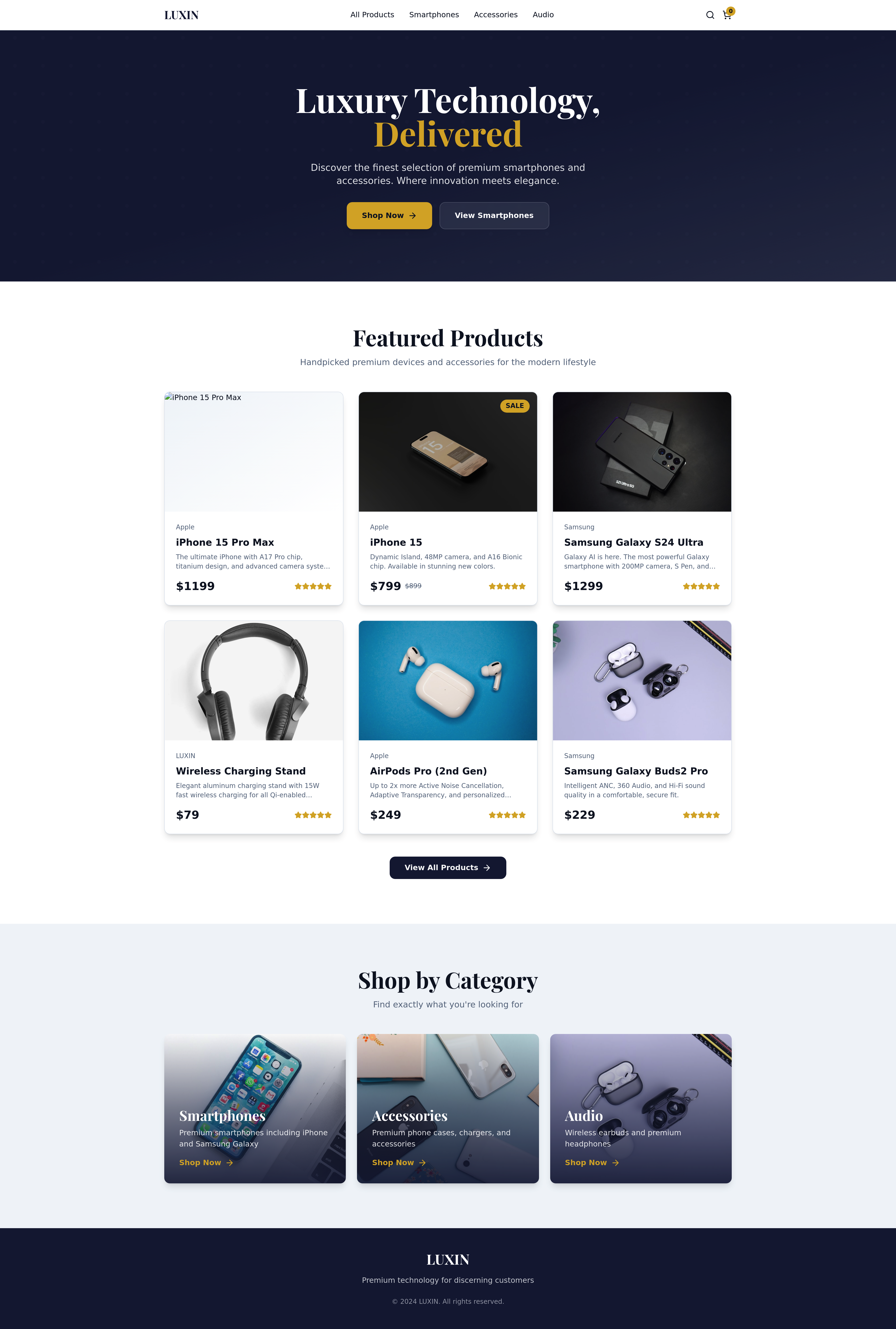 Discover LUXIN, a premium e-commerce website specializing in the latest smartphones and essential mobile accessories. Featuring top brands like Apple iPhones and Samsung, LUXIN offers a seamless shopping experience for all your mobile needs. Explore a wide range of products from protective cases to high-performance chargers, all designed to enhance your digital lifestyle.