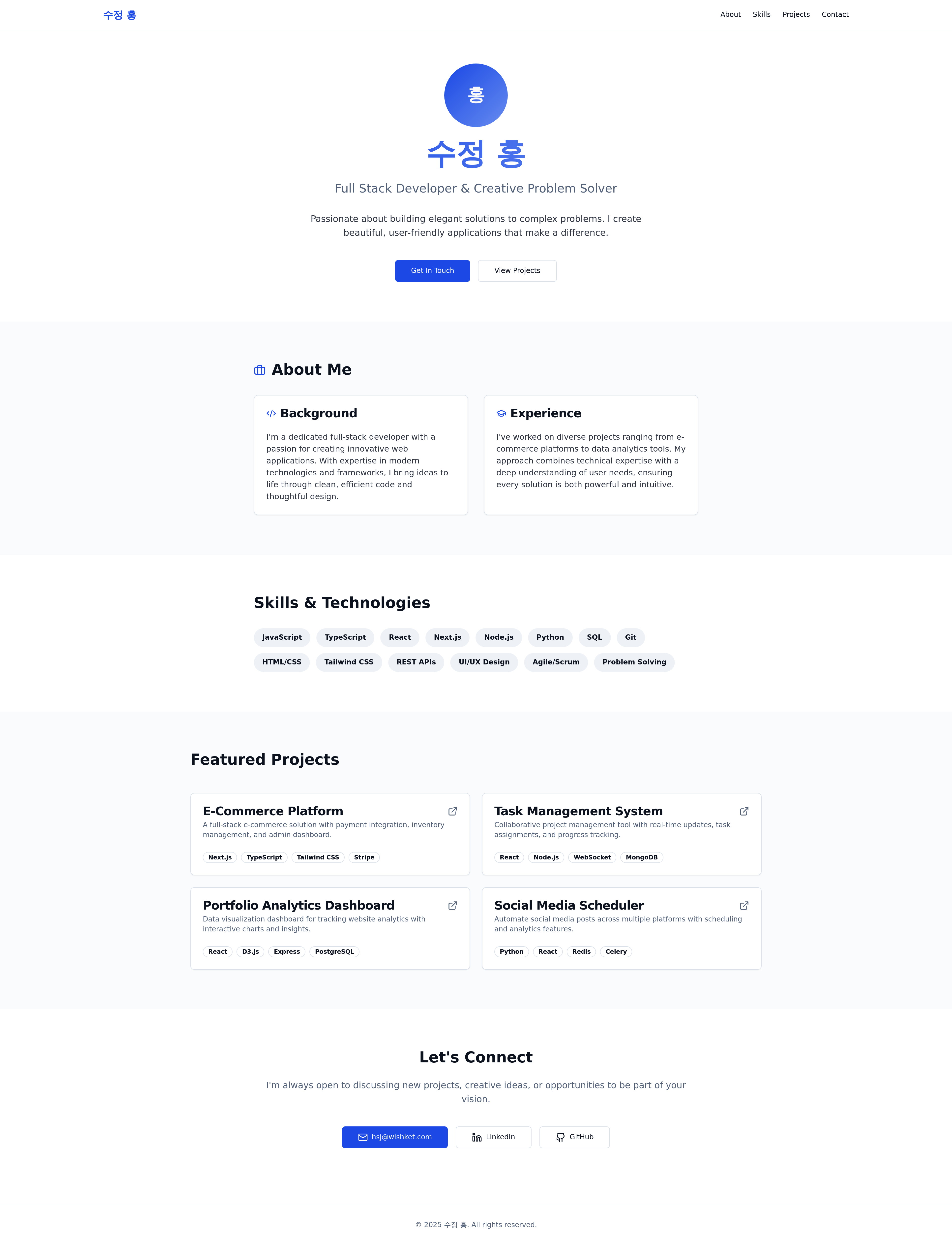 Create a professional online presence with this personal portfolio website template. Showcase your background, highlight your key skills, display your projects, and provide easy contact options for potential employers or collaborators. Ideal for freelancers, job seekers, and creatives looking to build a strong personal brand and attract new opportunities.