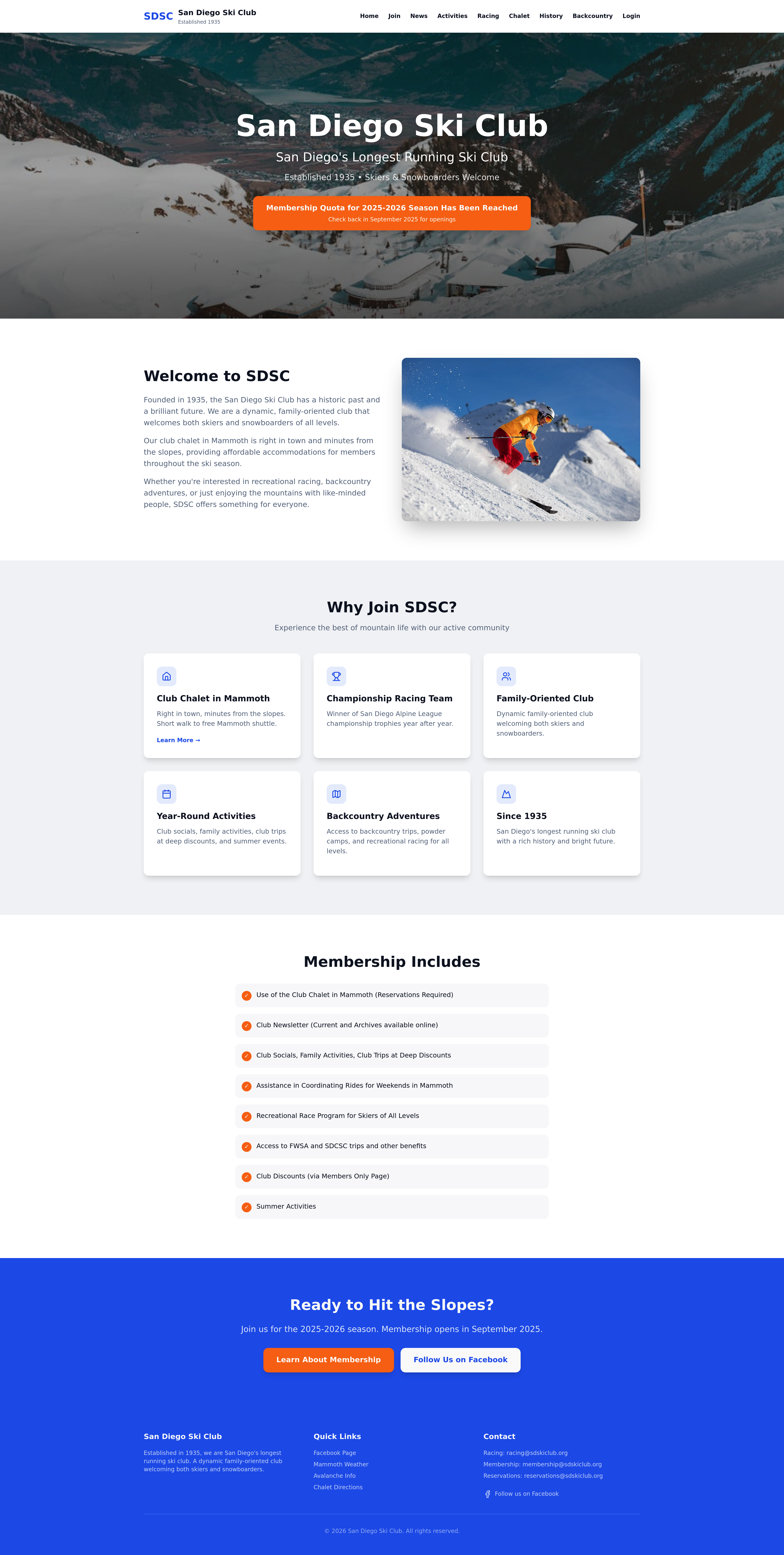 Explore the San Diego Ski Club website, a vibrant online hub for ski and snowboard enthusiasts. Discover upcoming trips, events, membership information, and stunning photo galleries. This modern redesign offers an enhanced user experience with a focus on community engagement and easy access to all club activities.