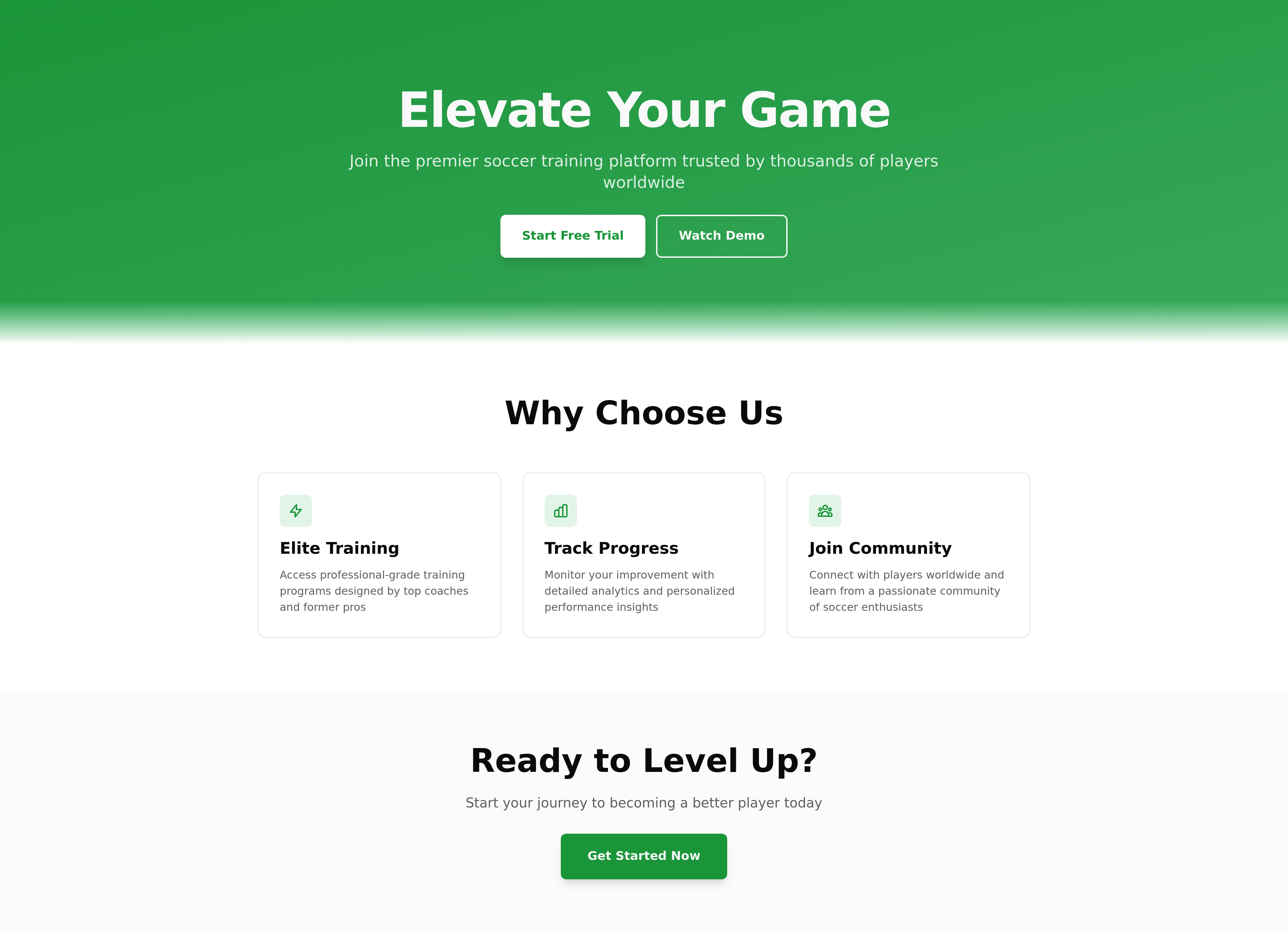 Showcase your soccer club or event with this sleek, responsive landing page built with Next.js. Features include dynamic content sections for team news, match schedules, player profiles, and contact information, perfect for engaging fans and attracting new members. This template demonstrates the power and flexibility of Next.js for high-performance web development.