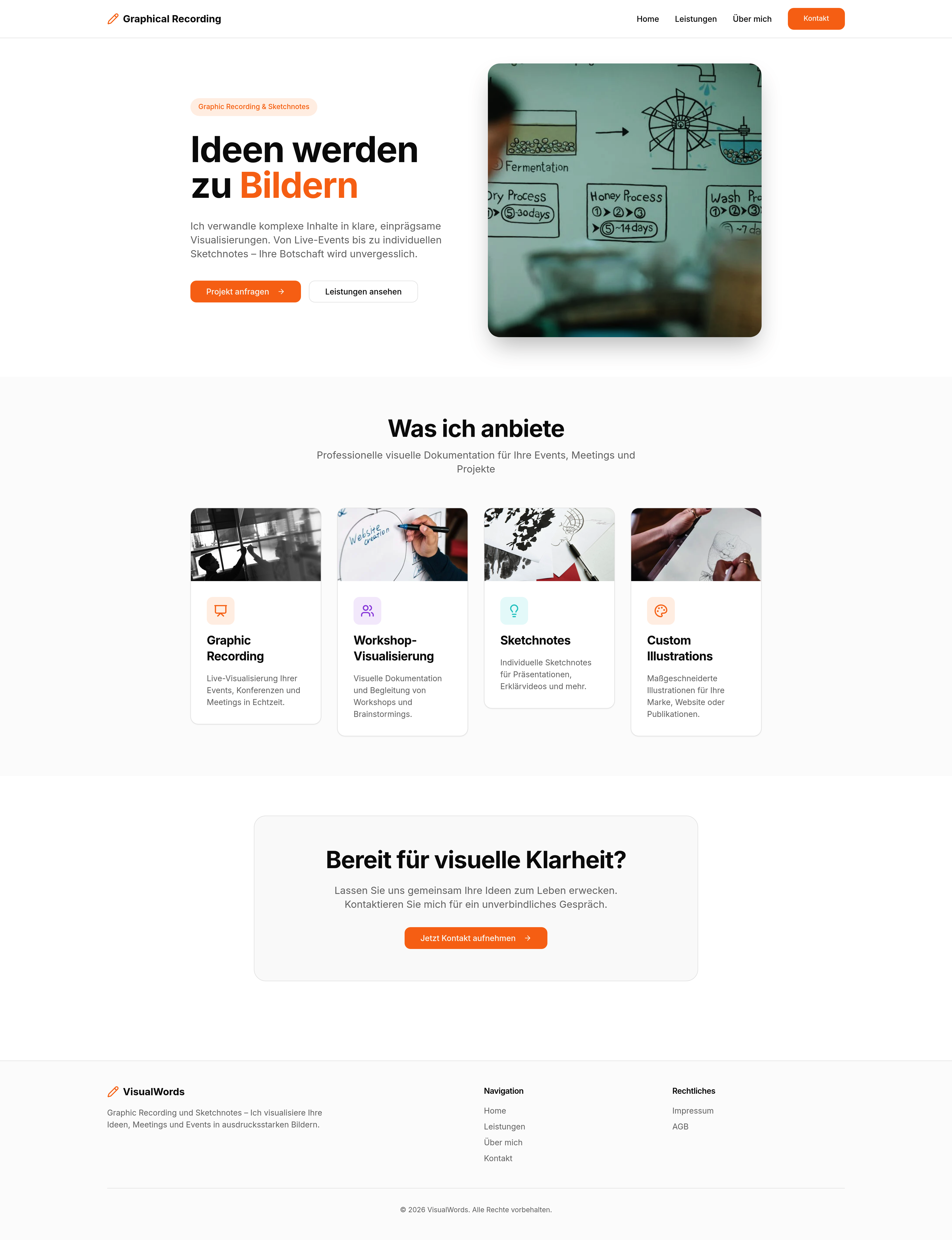 Erstellen Sie eine professionelle Online-Präsenz für Graphic Recorder und Sketchnoter. Diese Website bietet eine ansprechende Darstellung Ihrer visuellen Dienstleistungen, Portfolios und Referenzen. Inklusive rechtssicherem Impressum und AGB, um Vertrauen bei Kunden aufzubauen und Ihre Geschäftstätigkeit abzusichern. Ideal für Freiberufler und Agenturen, die ihre kreativen Leistungen online präsentieren möchten.