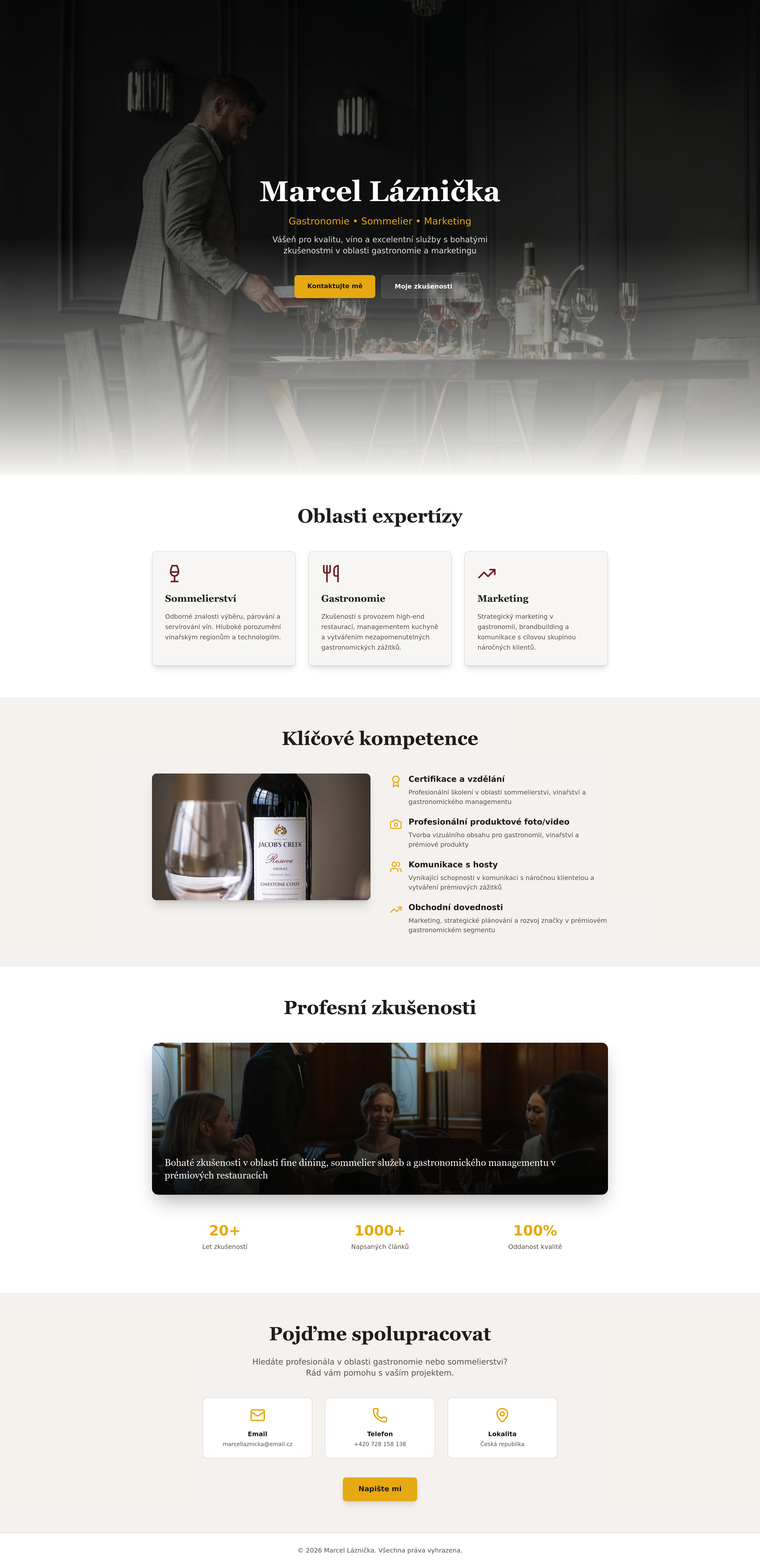Showcase your professional journey and expertise in gastronomy, sommelierie, and marketing with a personalized portfolio website. Highlight your skills, experience, and achievements to attract potential employers or clients in the culinary and hospitality industries. This website serves as an online CV, presenting your unique professional story.