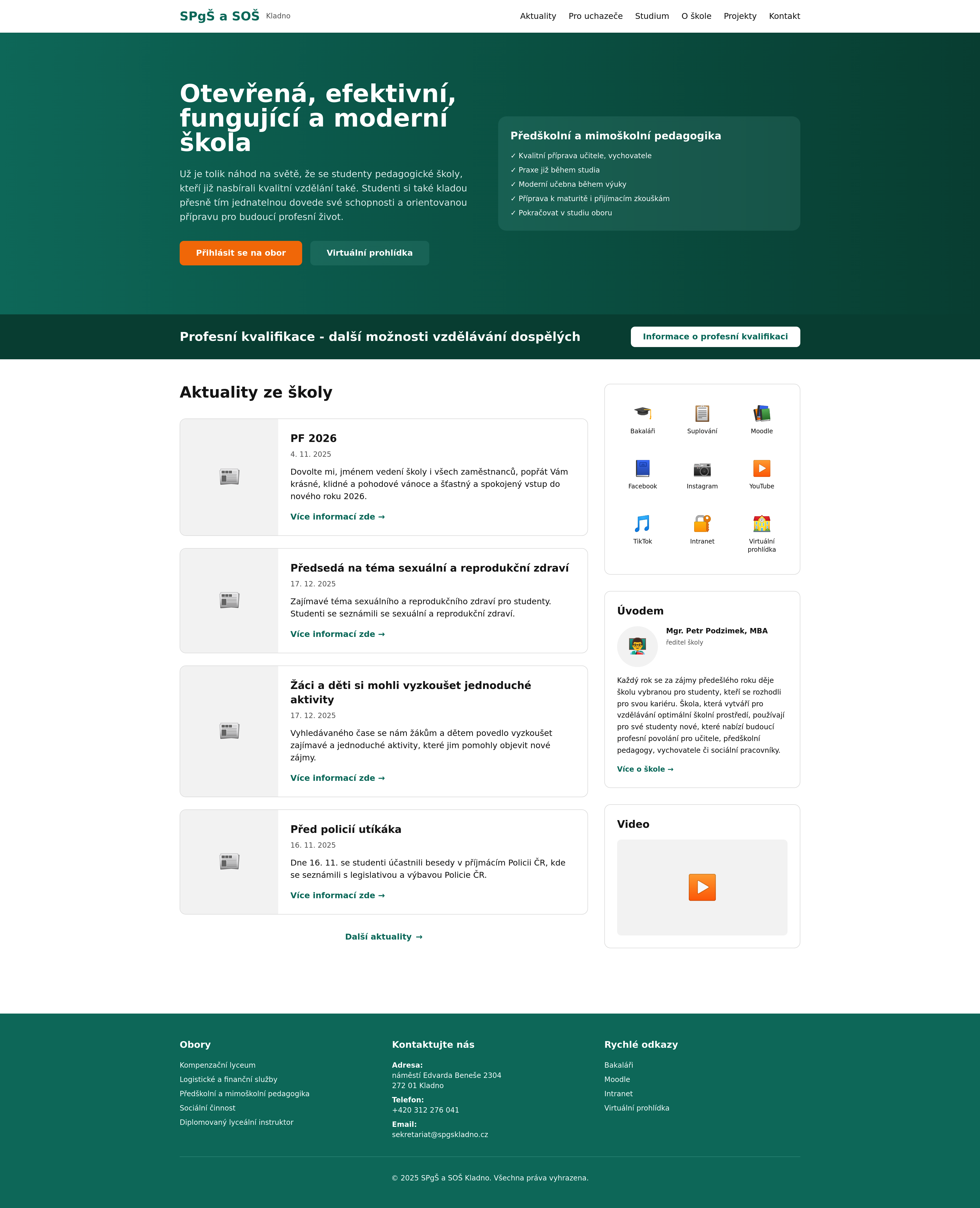 Modernize the online presence of Střední pedagogická a odborná škola Kladno with a new, user-friendly website. This project focuses on creating an intuitive platform for students, parents, and faculty, featuring easy access to school information, curriculum details, admissions, and news updates. Enhance engagement and streamline communication for this educational institution.