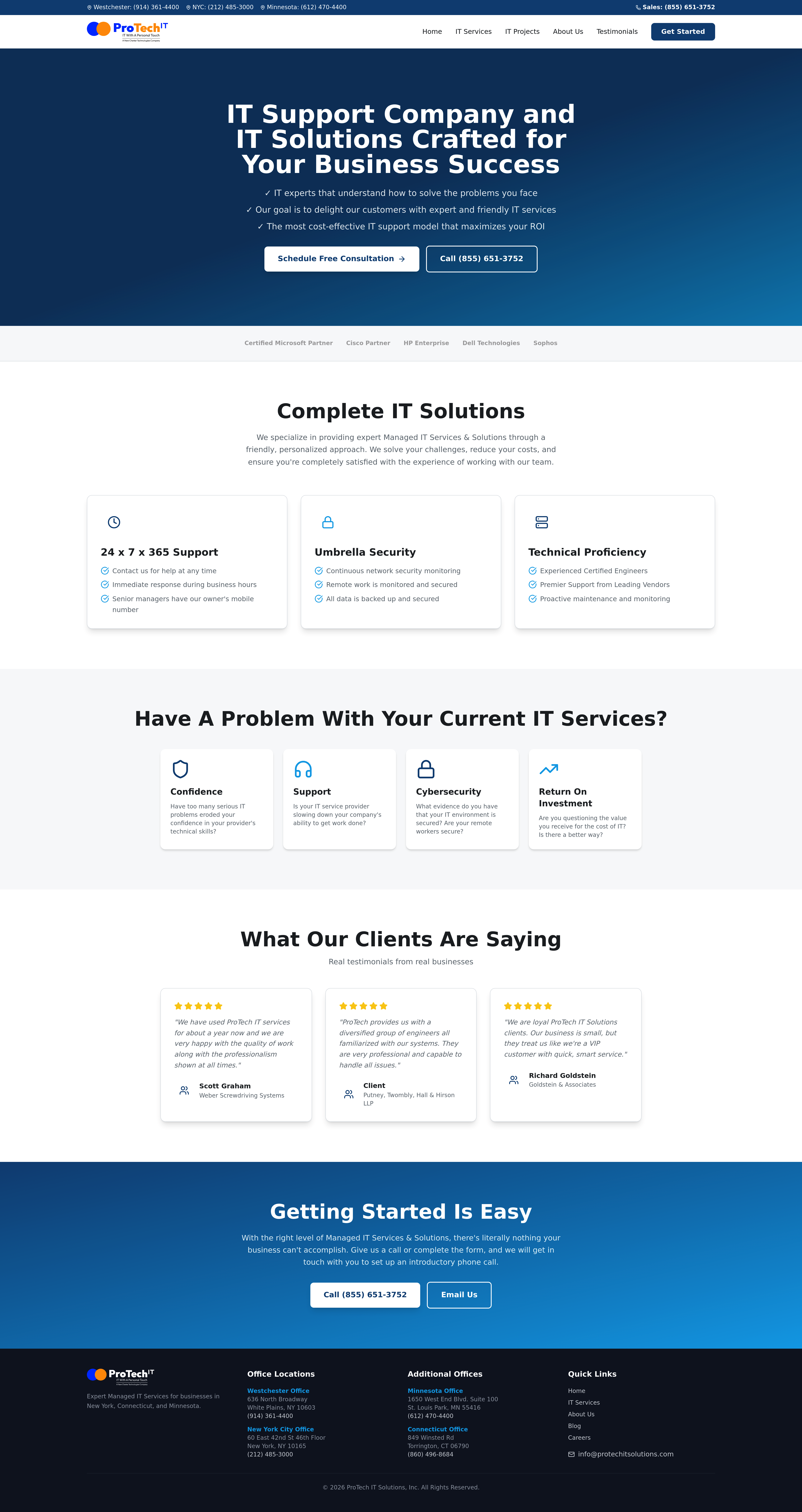 A modern, professional redesign of ProTech IT Solutions website, focusing on improved user experience, contemporary layout, and clear presentation of IT services. This business website showcases their expertise in IT solutions, managed services, and cybersecurity, attracting new clients with a fresh, engaging online presence.