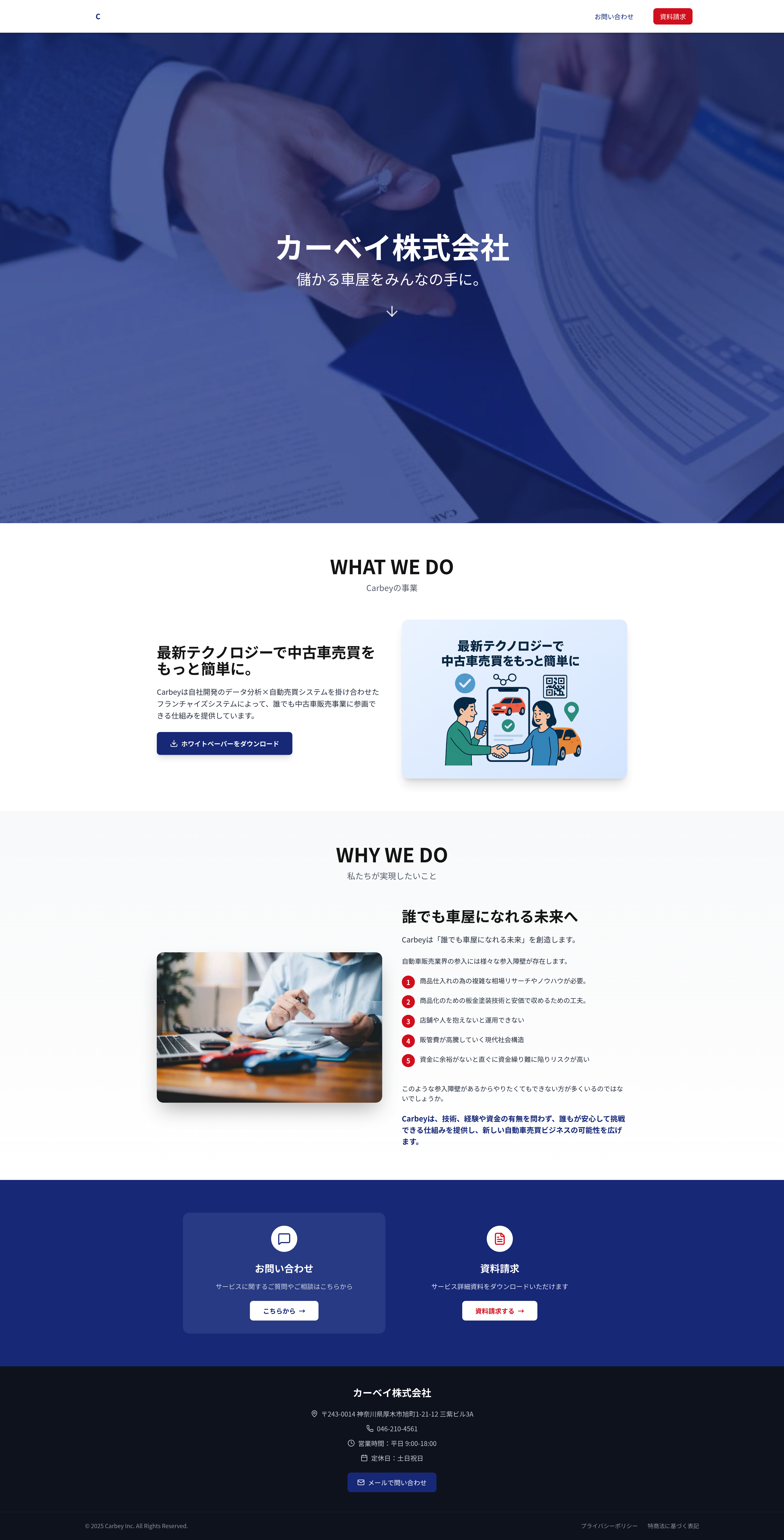 A modern, professional redesign of the Carbey.jp website, focusing on contemporary design principles, improved layout, and enhanced user experience. This project aims to transform an existing website into a visually appealing and highly functional online presence, reflecting the business's identity with a clean and intuitive interface. Ideal for businesses seeking a refreshed digital presence.