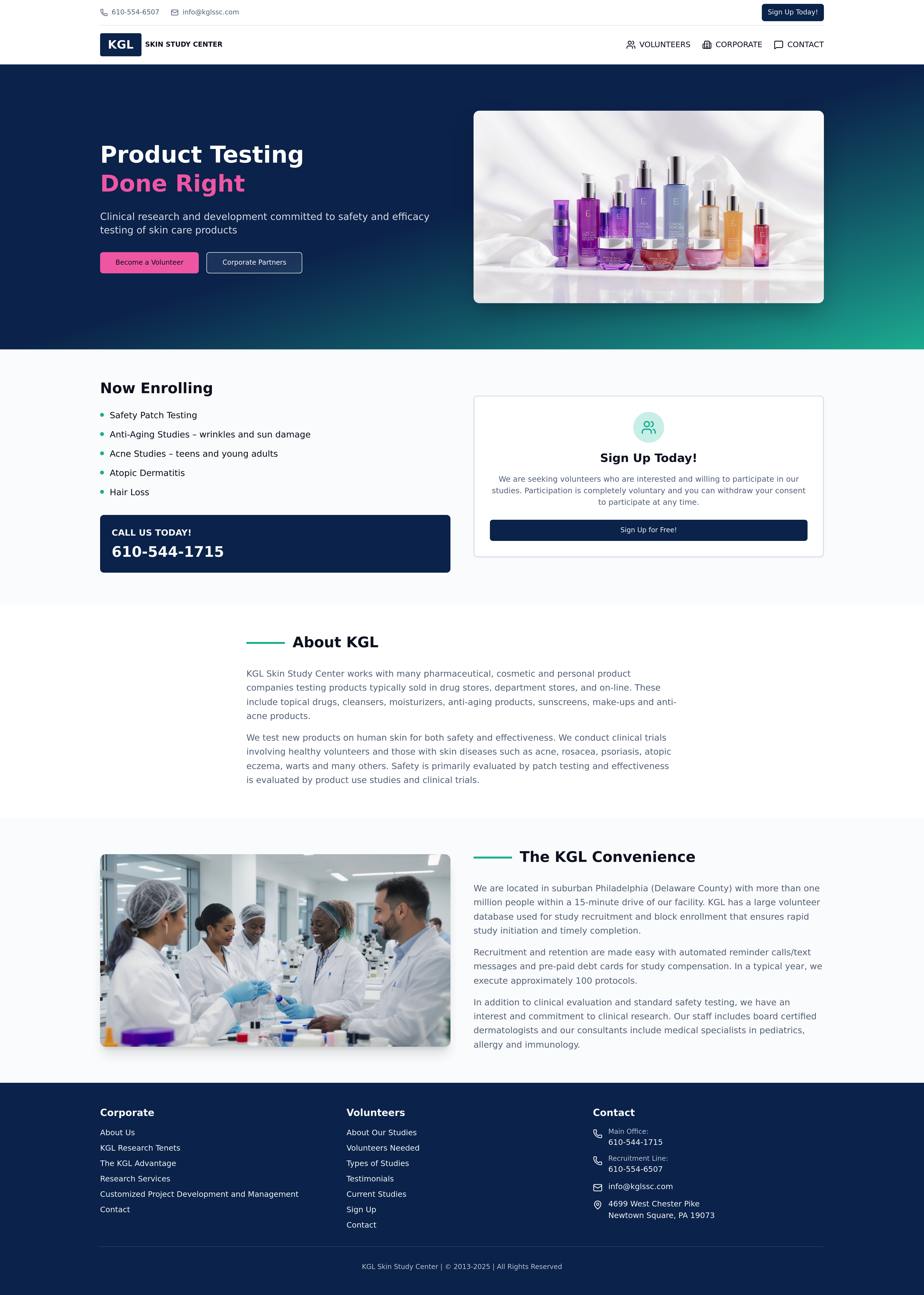 Explore KGL Skin Study Center, a modern and professional website redesign showcasing dermatology services, skin care treatments, and expert consultations. This business website offers an enhanced user experience with a clean layout, improved navigation, and engaging visuals, reflecting a commitment to skin health and aesthetic excellence.