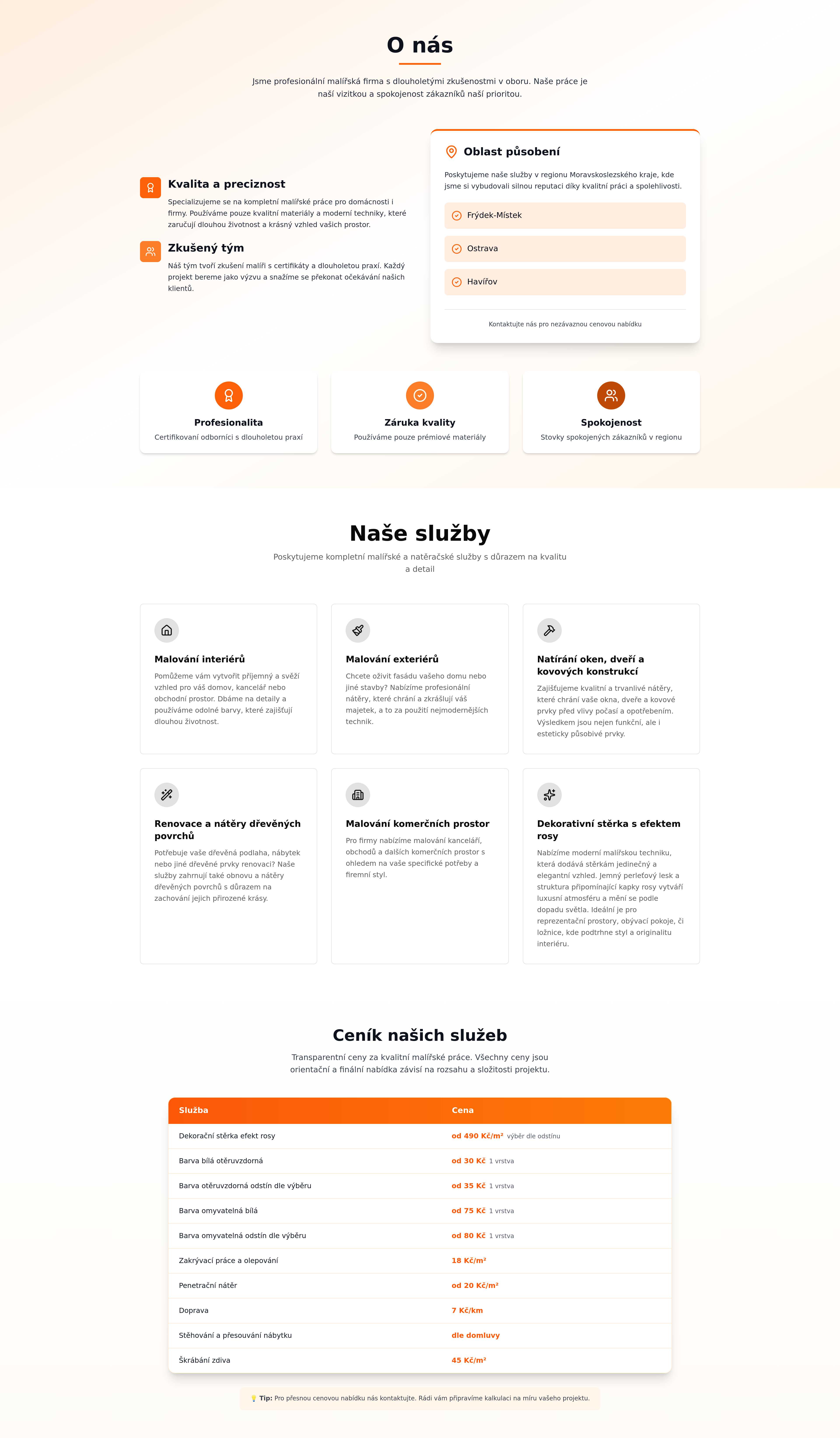 Showcase professional painting and renovation services with this business website template. Featuring sections for interior and exterior painting, window and door treatments, wood surface restoration, and commercial space painting, it highlights durable materials and modern techniques. Discover unique decorative finishes like the "dew effect" for elegant interiors. Perfect for painters, contractors, and renovation companies.