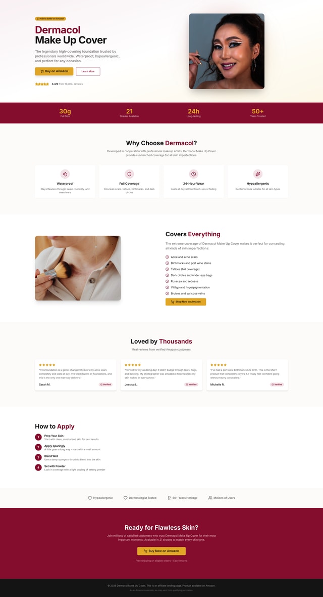 Dermacol Landing Page